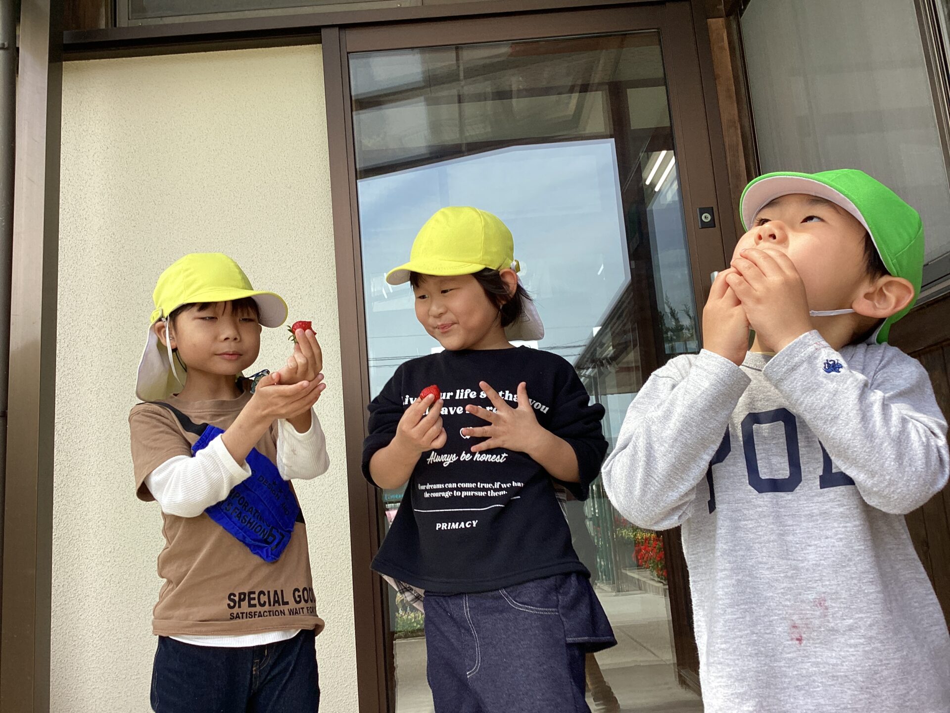 そらチームにも、「ほしい人、いちごありますよ♪」とお知らせしました。みんなで分けようとしたら、沢山は食べられませんね。ここでも、みんなで「おいしいね」を共有する経験になりました。
