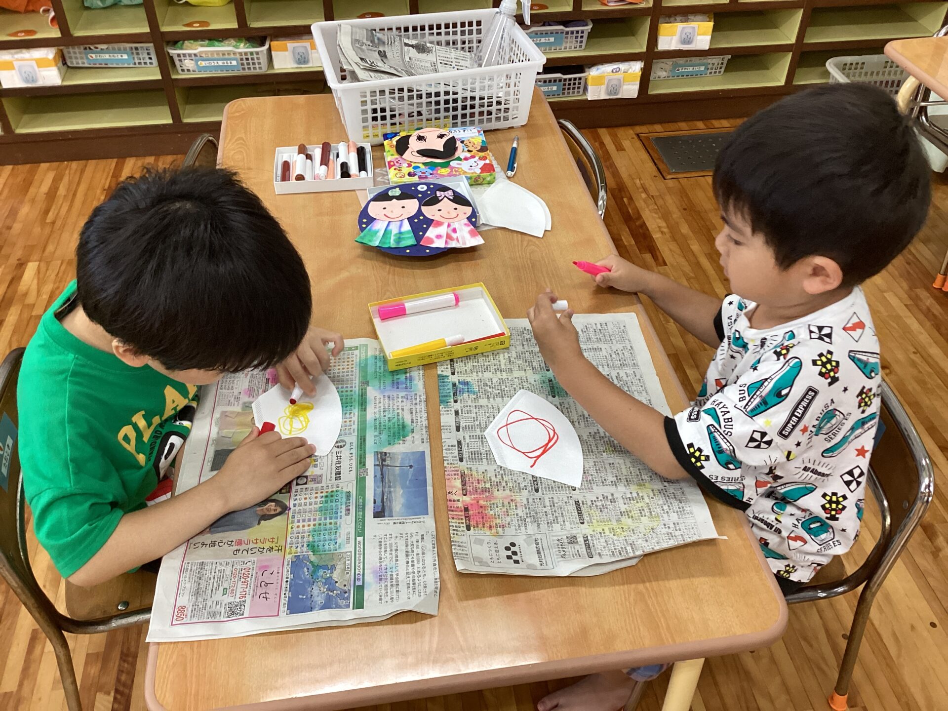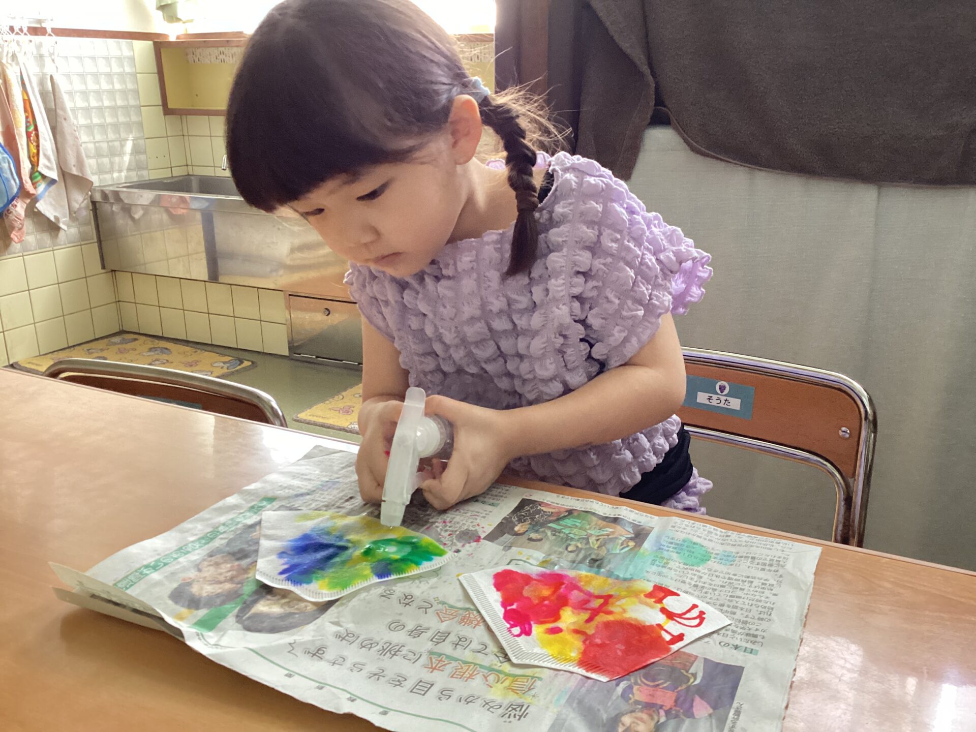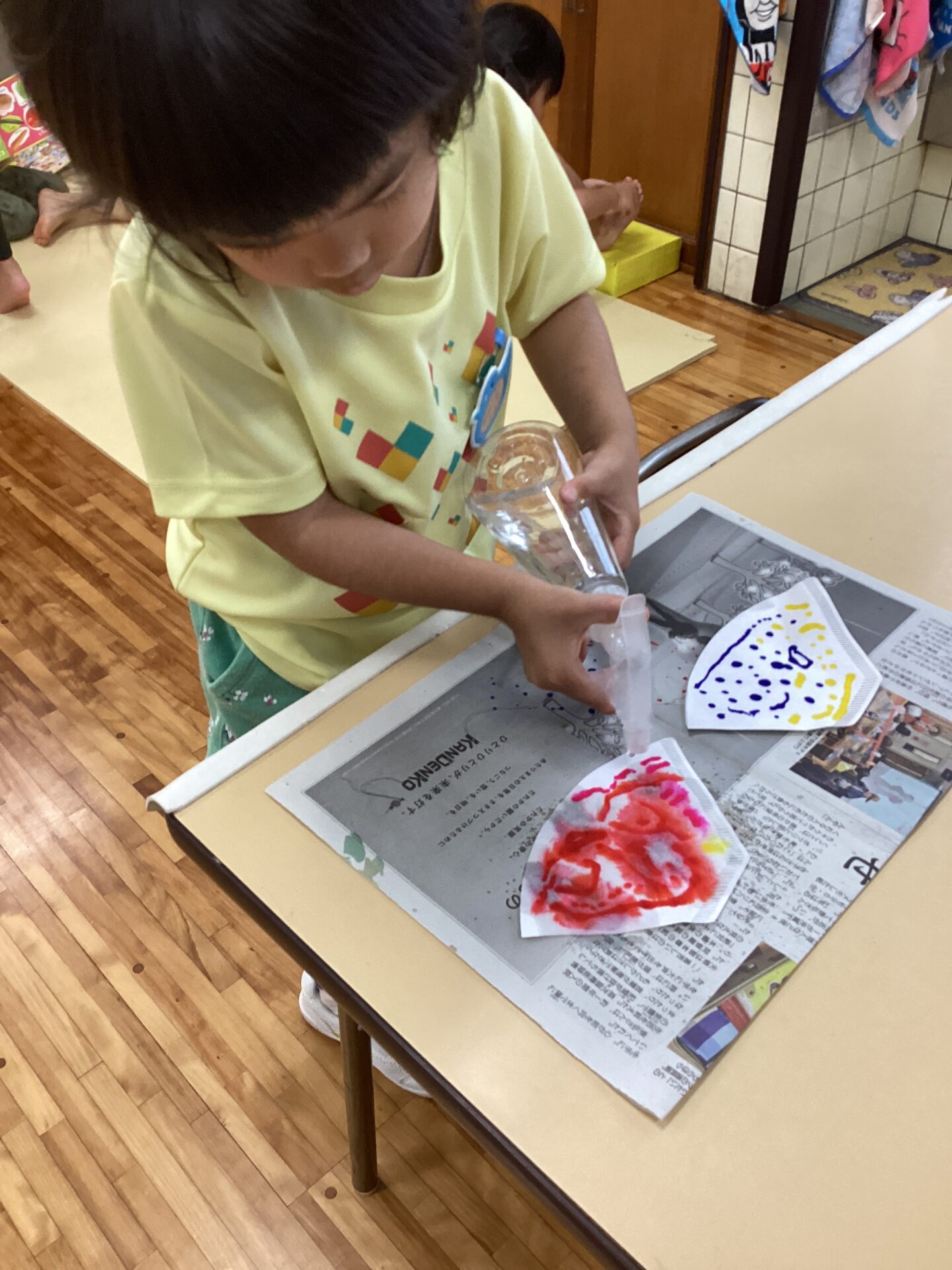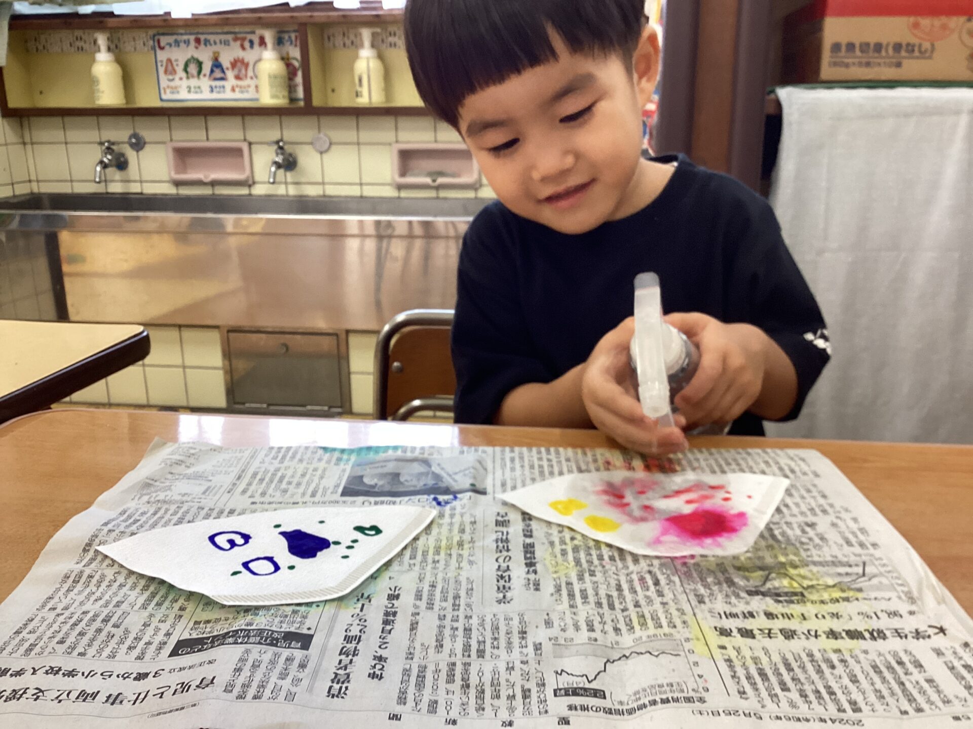 「どんな模様になるかなあ?」とお話ししながら作りました♪