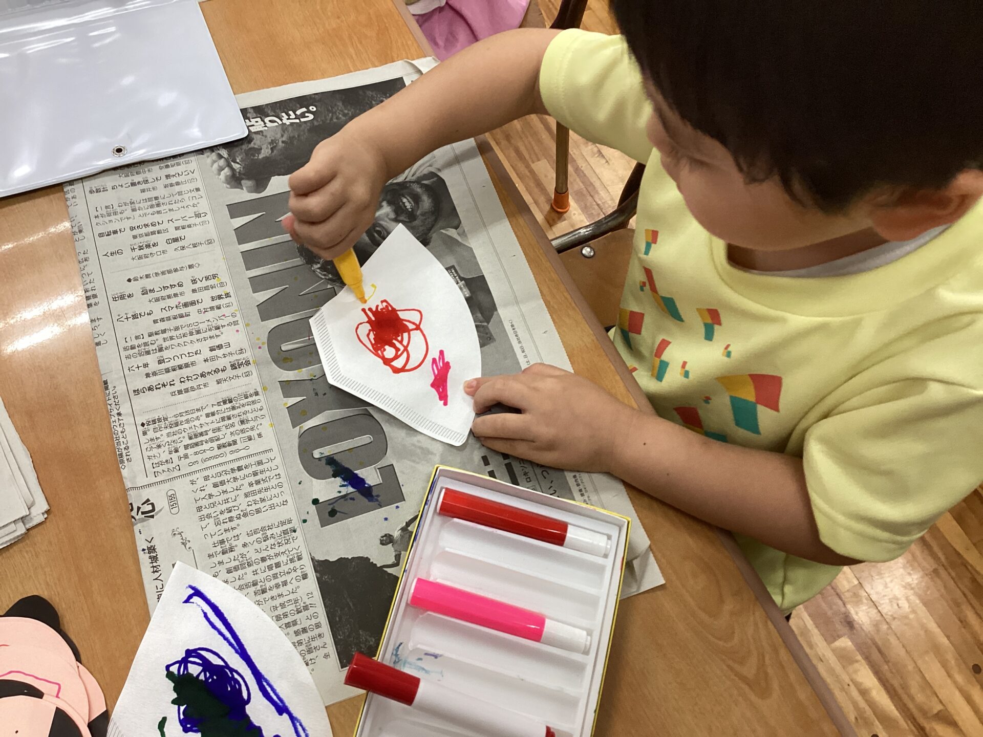 水性のペンでフィルターにお絵かきをしたあと、