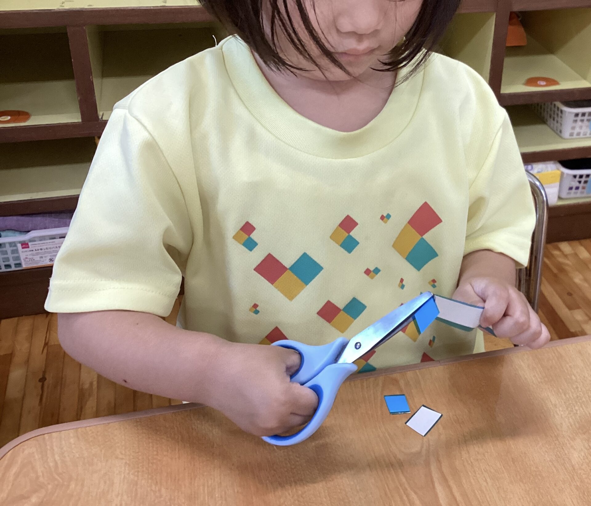 カラーテープをハサミで切って、