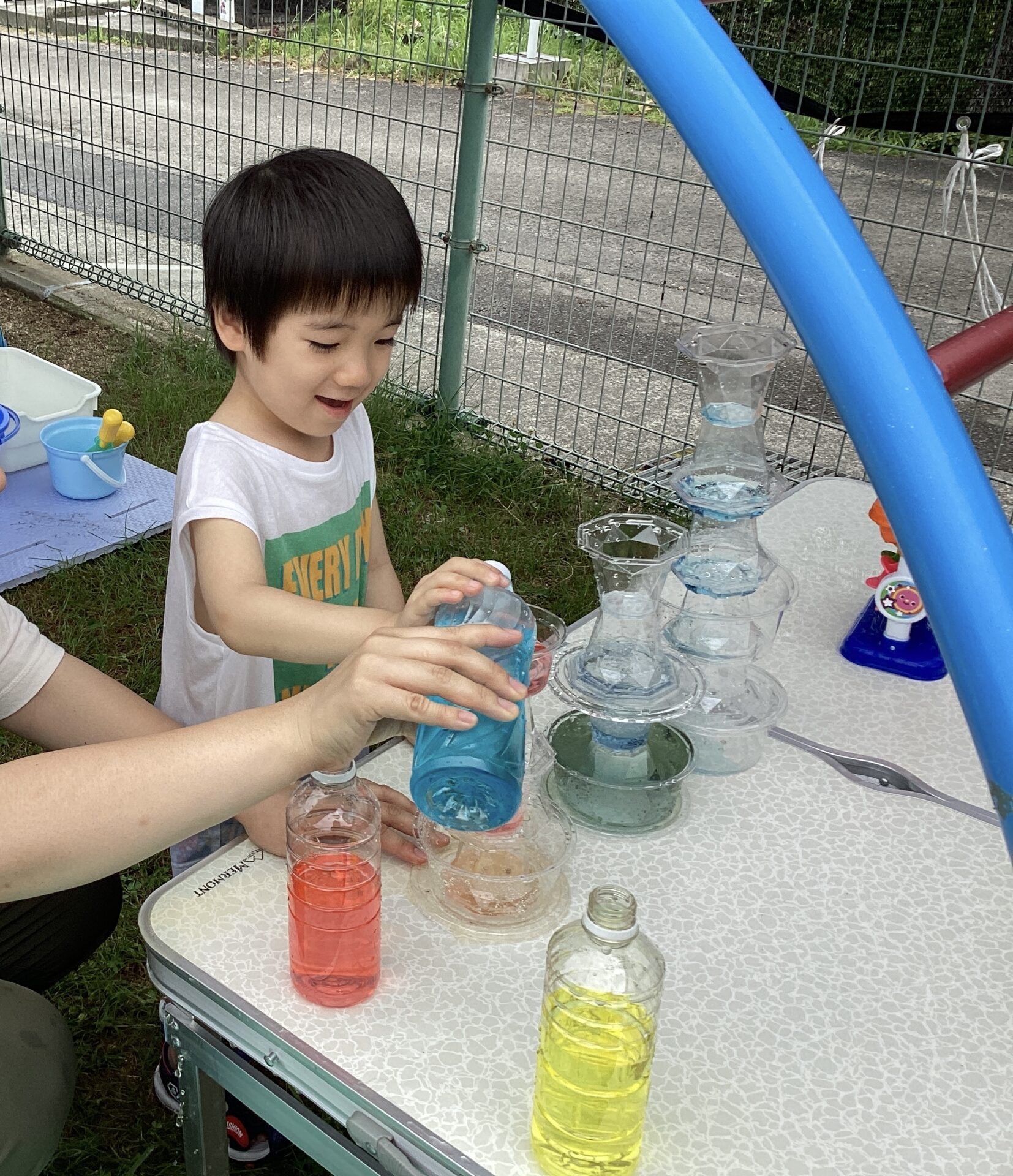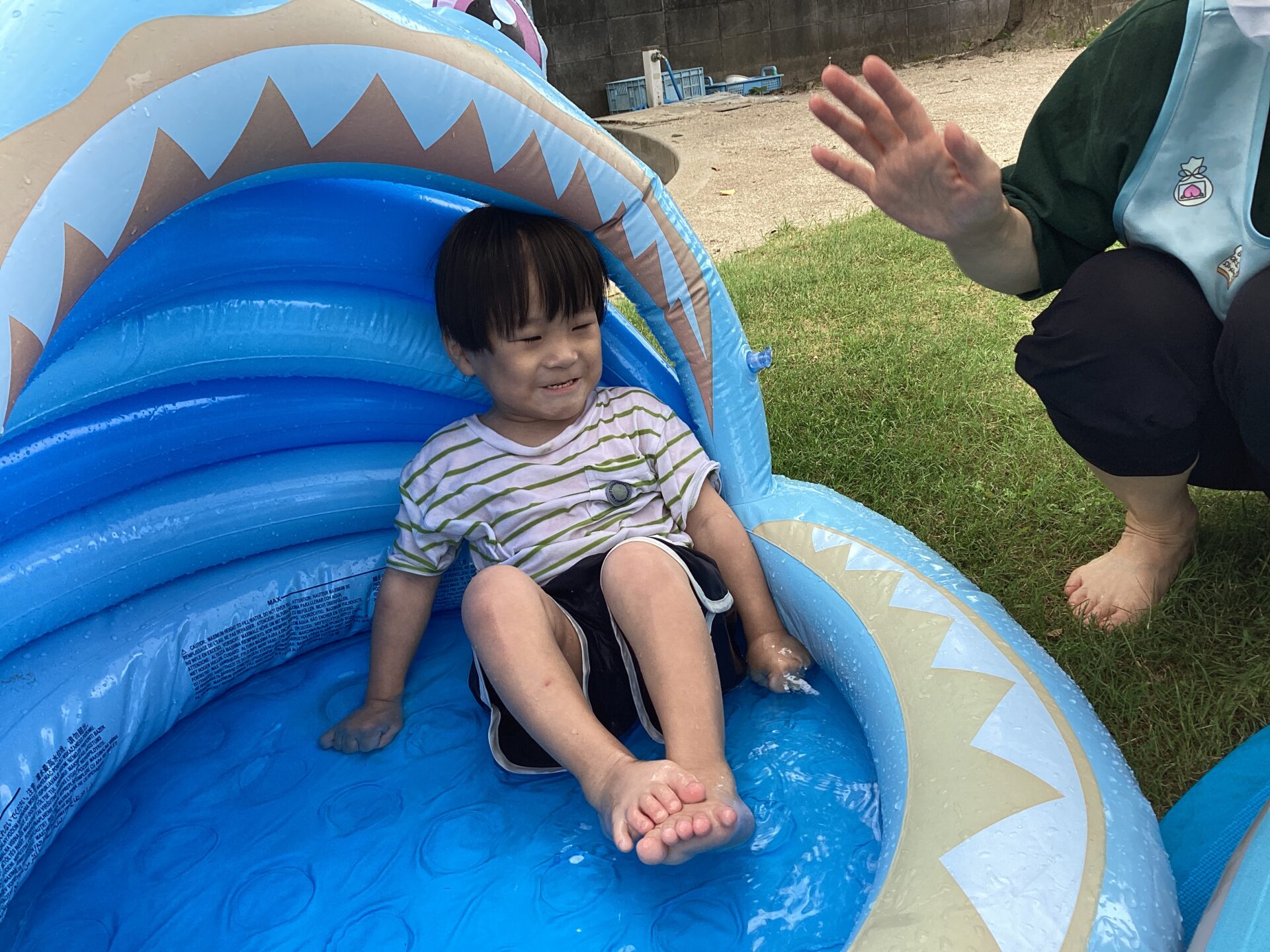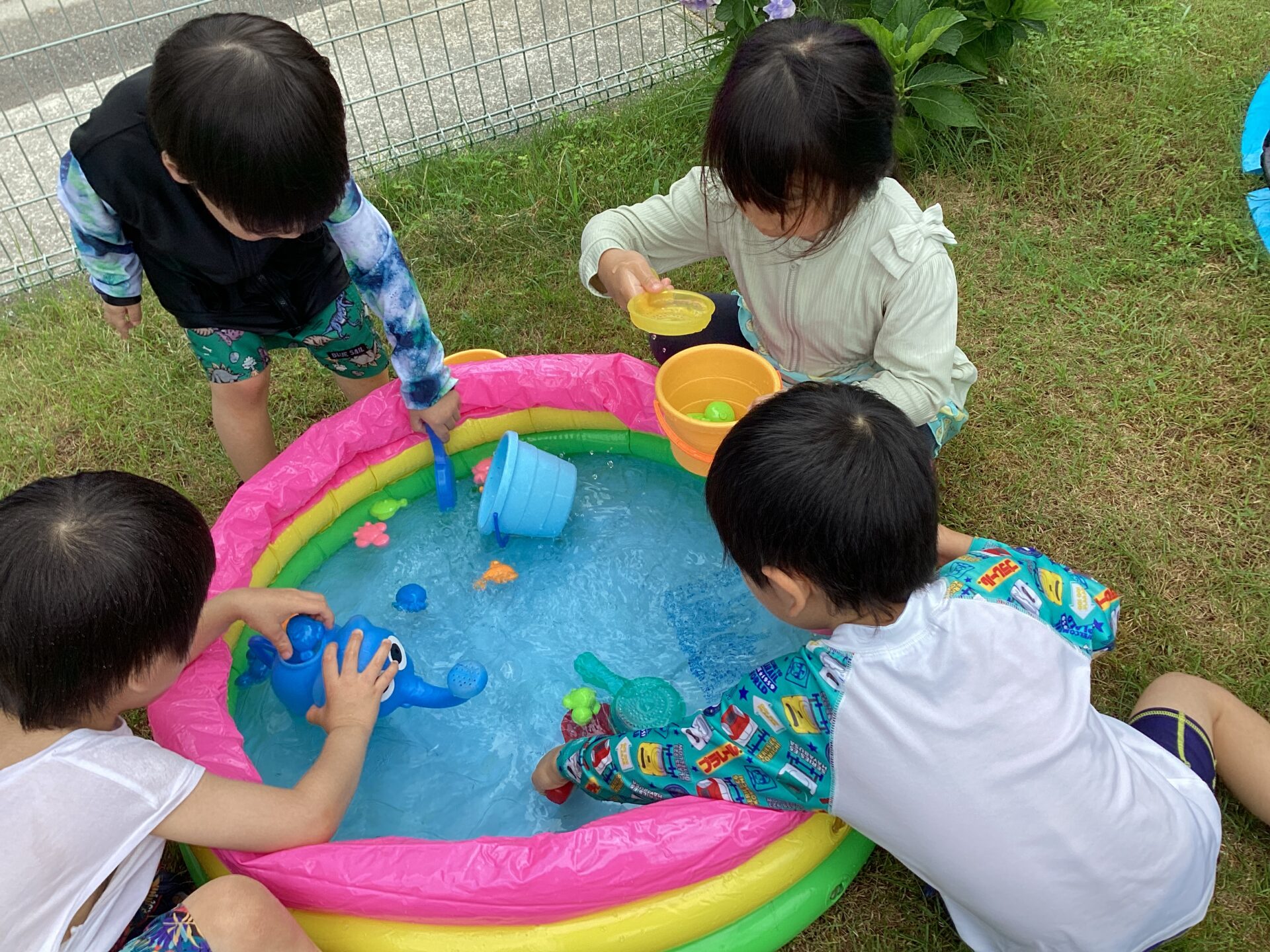 7月から水遊びを楽しんでいるそらチームの子どもたち。