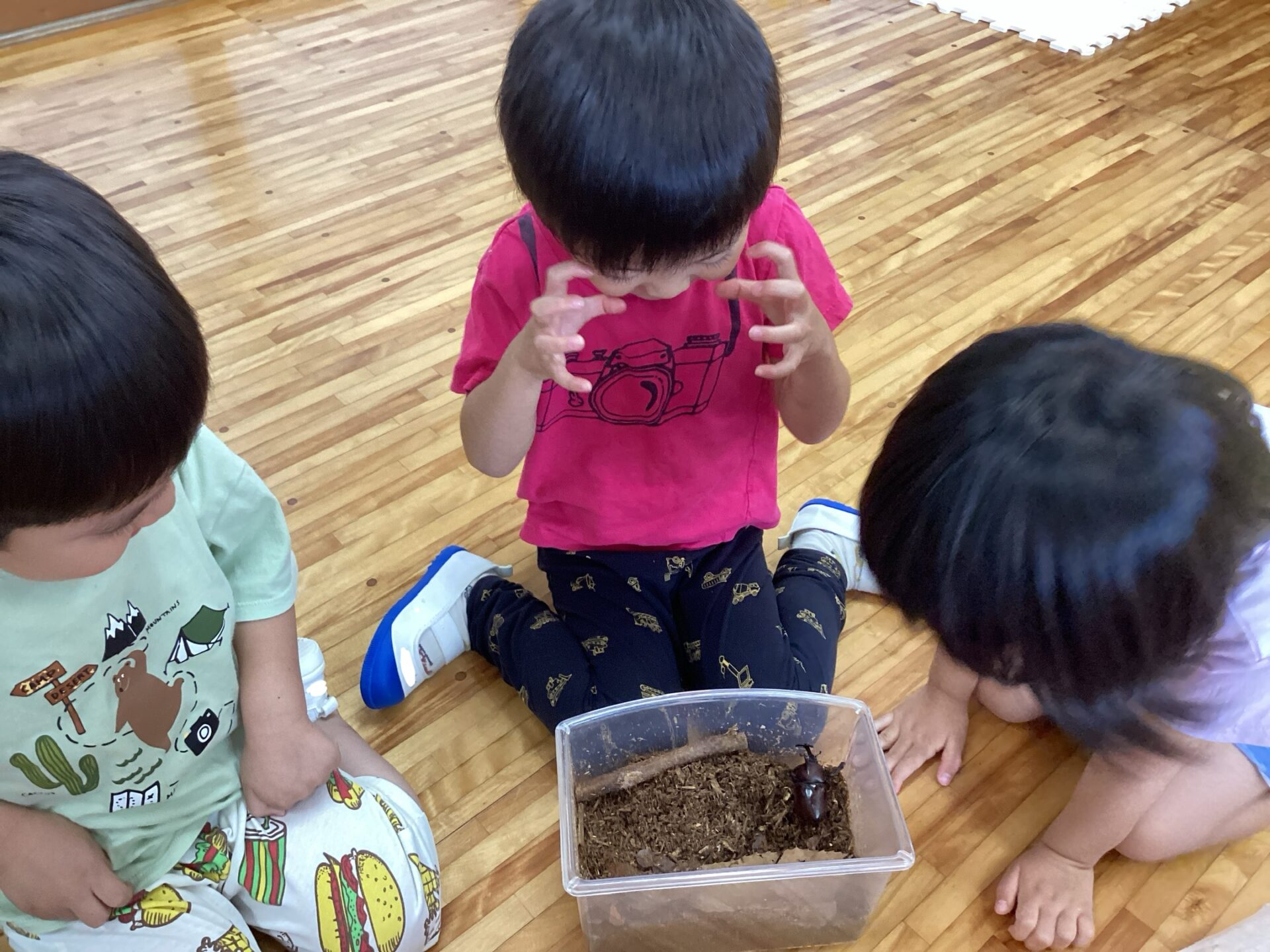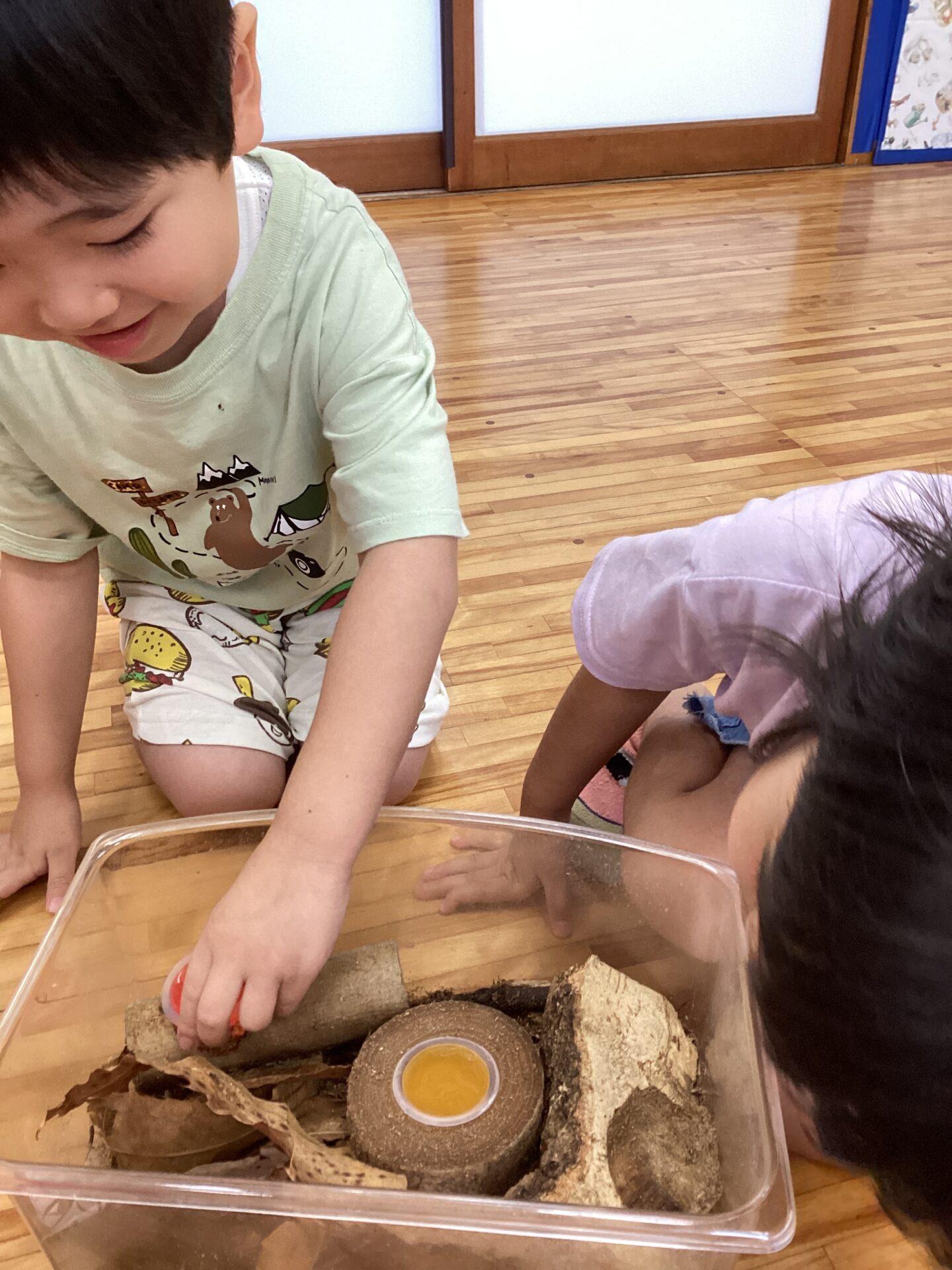 うれしそうに覗き込んでいる子どもたちです。