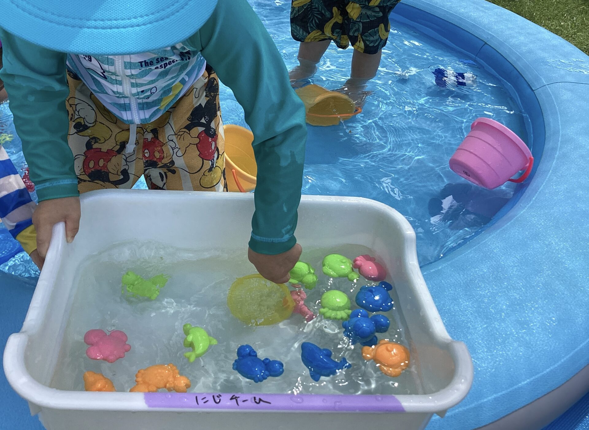 魚すくいをして、小さな魚を集めたり、手に持って泳がせたりして遊ぶのが好きなお友だちもいます。