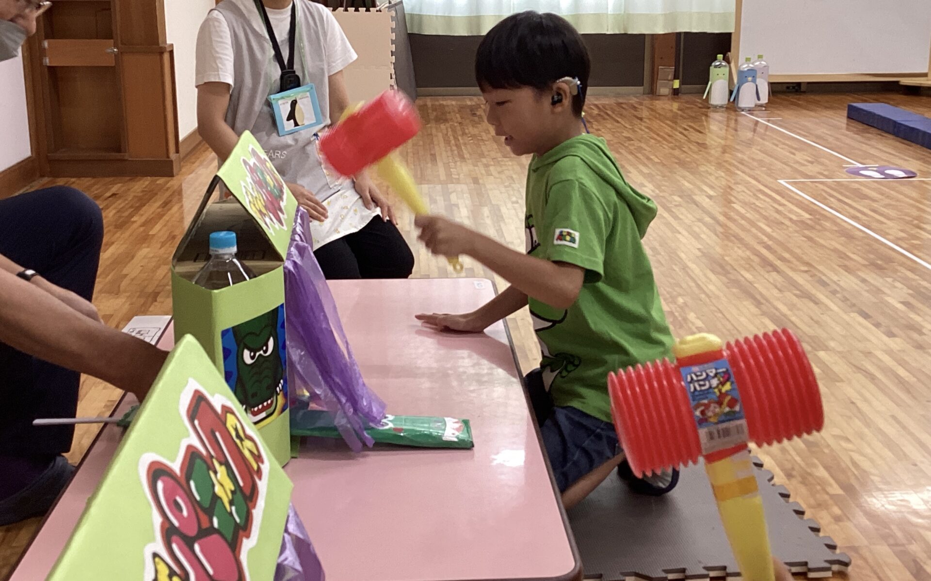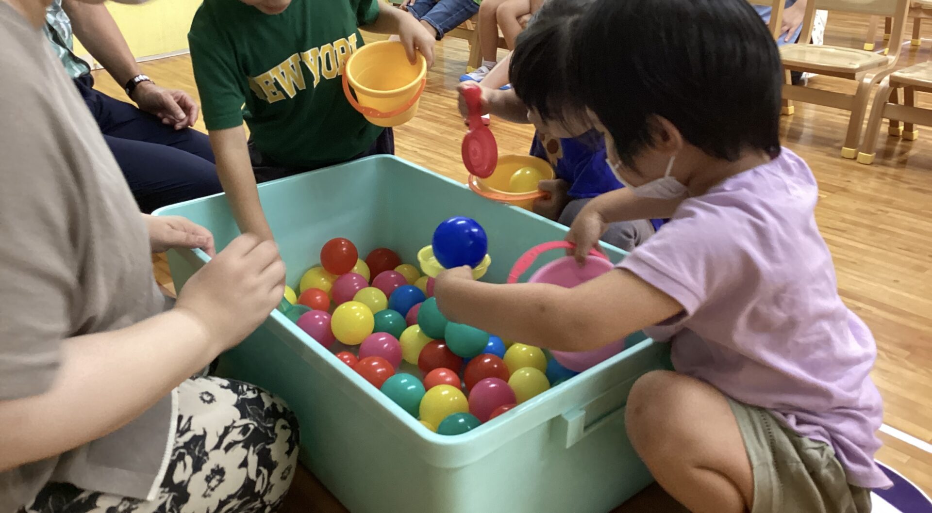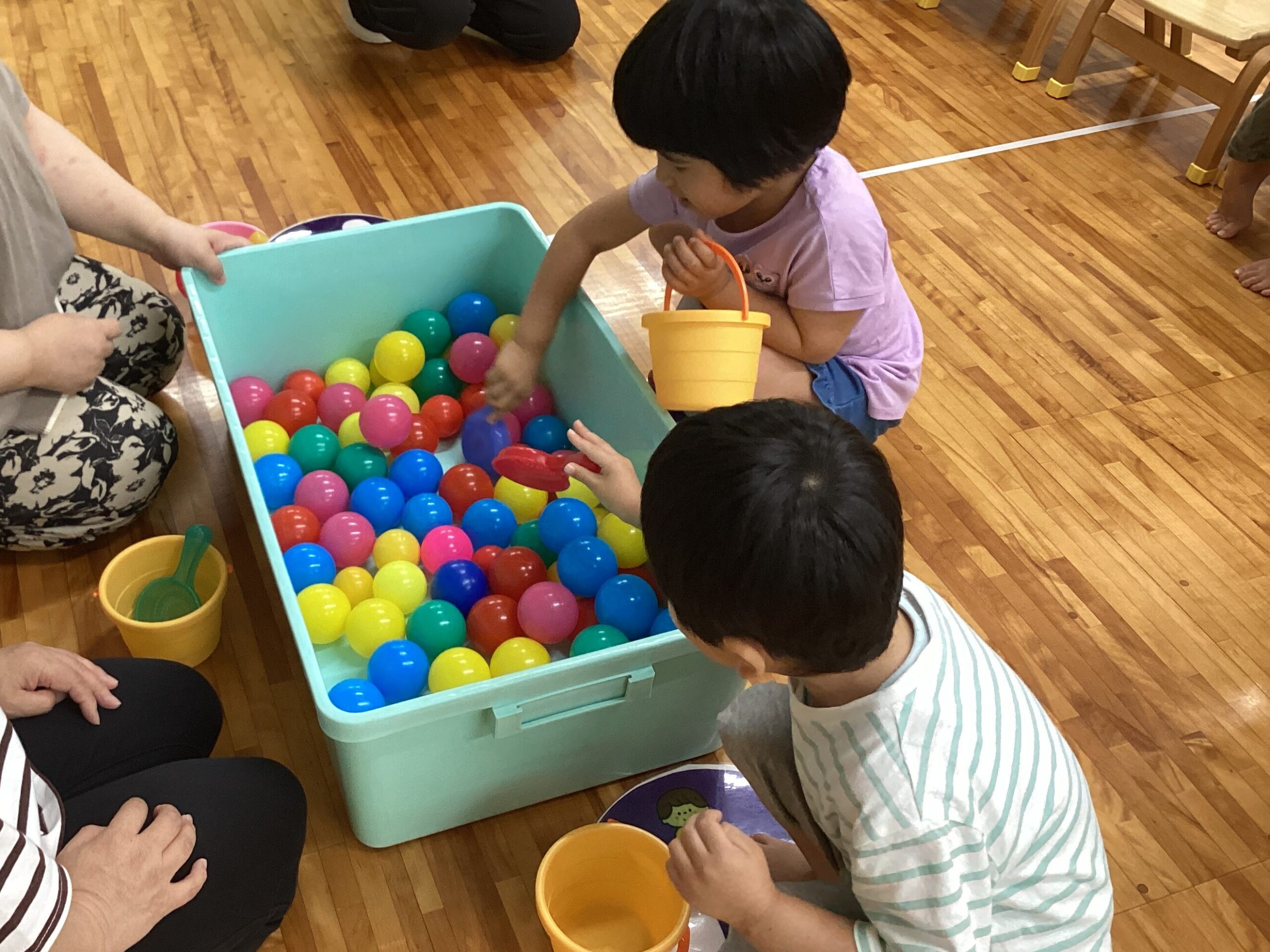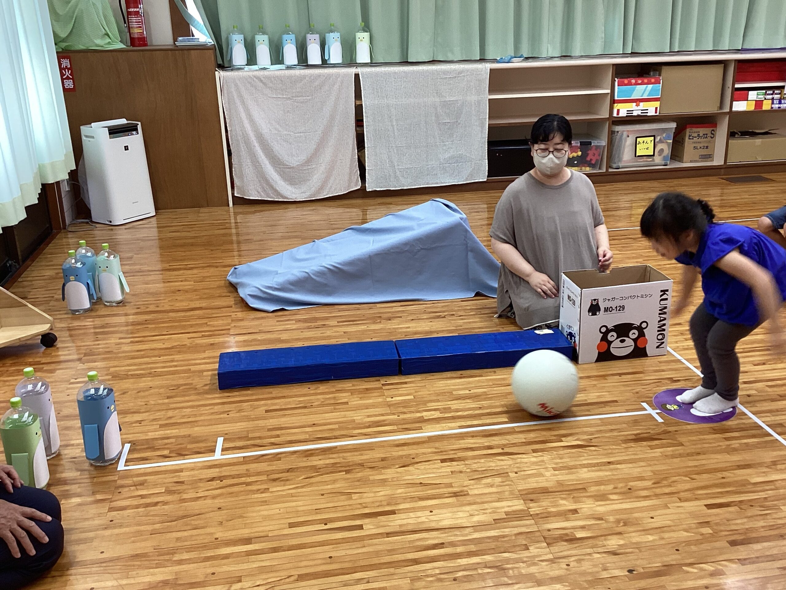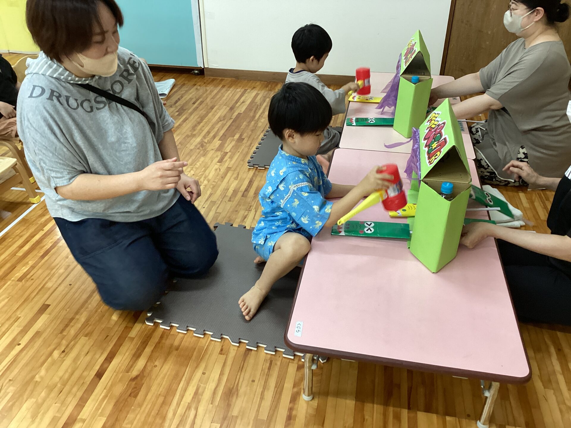 初めてのコーナー遊びも、小グループで集まって行うとやり方が分かって楽しむことができ、友だちが遊んでいる間、「がんばれー」と応援している姿もありました。