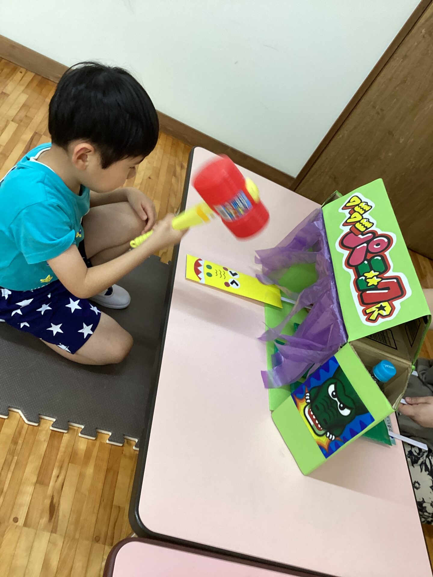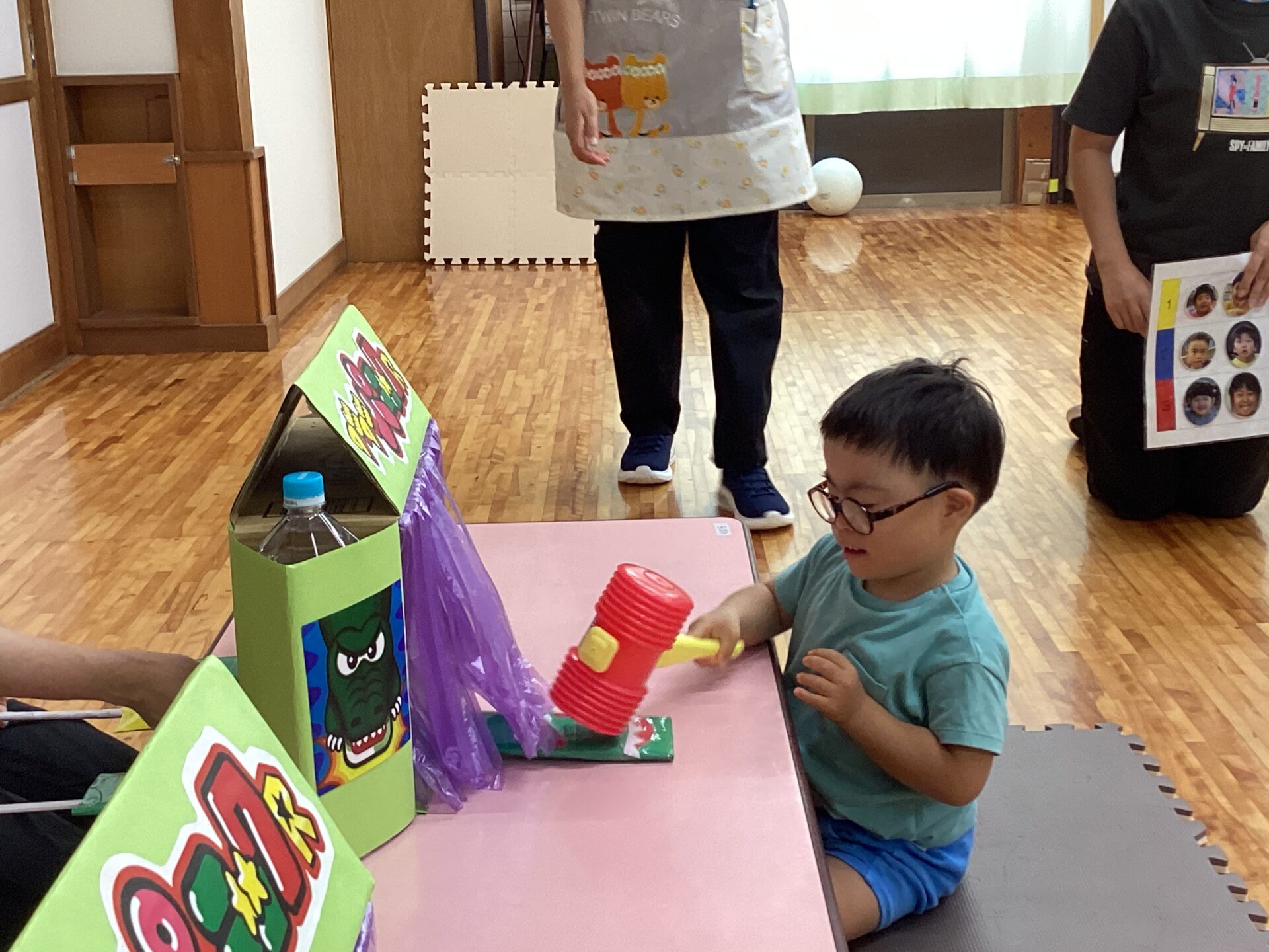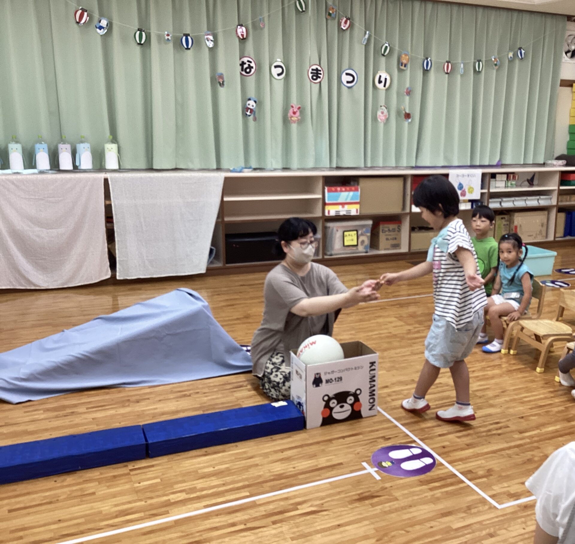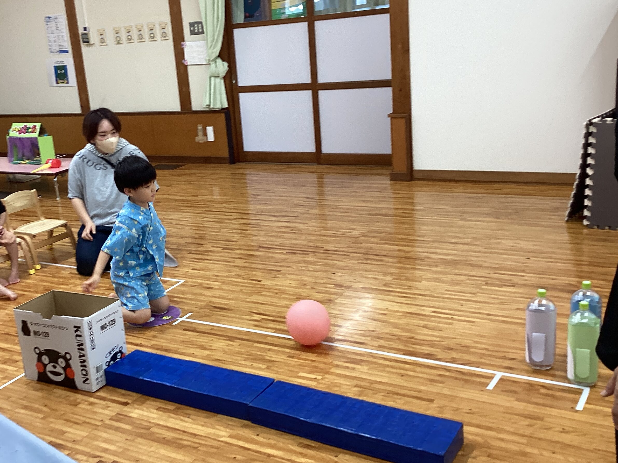 今日から3日間(^▽^)/チームごとに、日にちや時間を分けて夏祭りごっことして、コーナーで遊べるようにしています。子ども達の「もう1回したい!」や「初めてすることは苦手だよ」「お友だちのしている様子を見て、安心してからやりたいな」というリクエストになるべく応えられるように3日間を設けました。