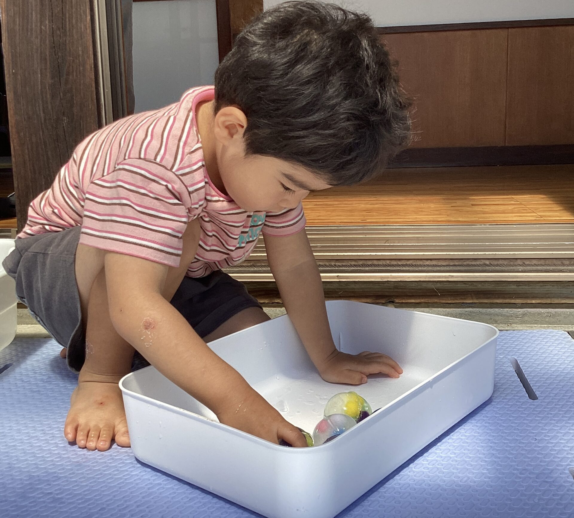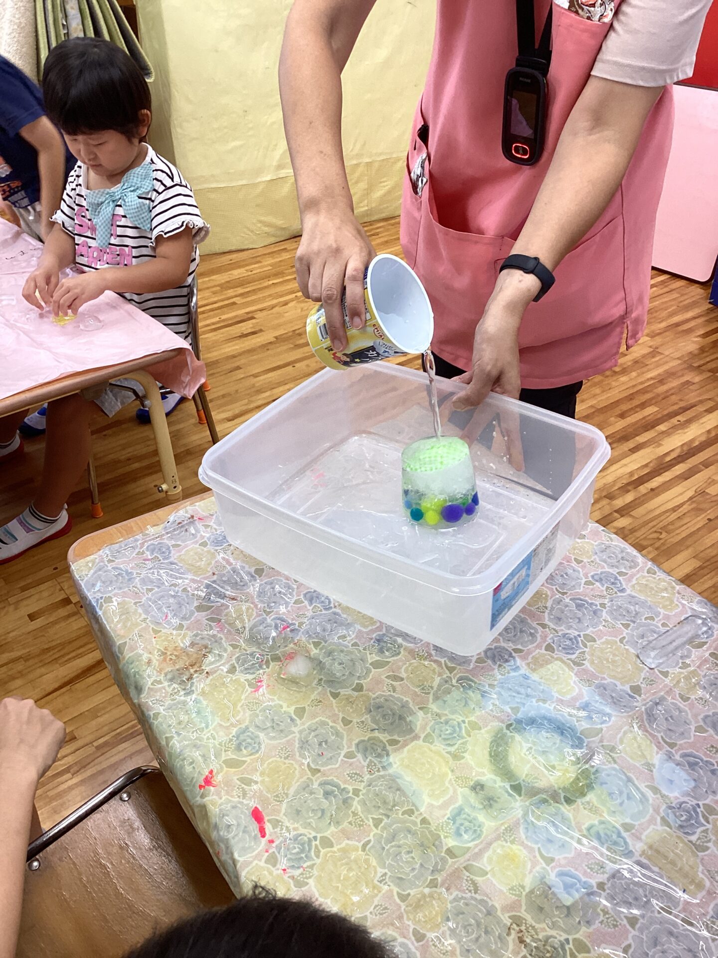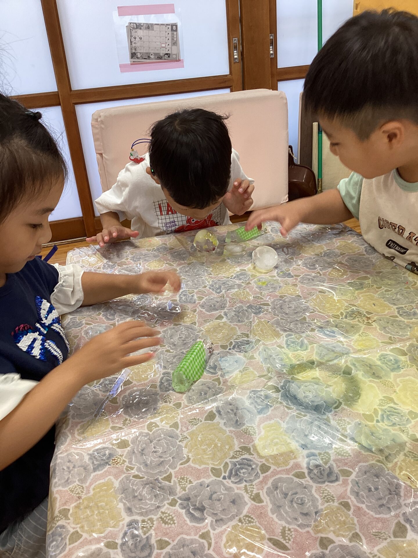 カラフルなデコレーションボールを入れた氷に子どもたちは夢中でした。