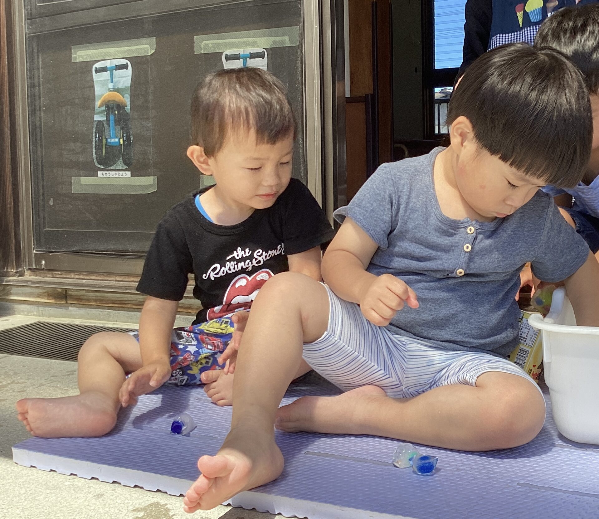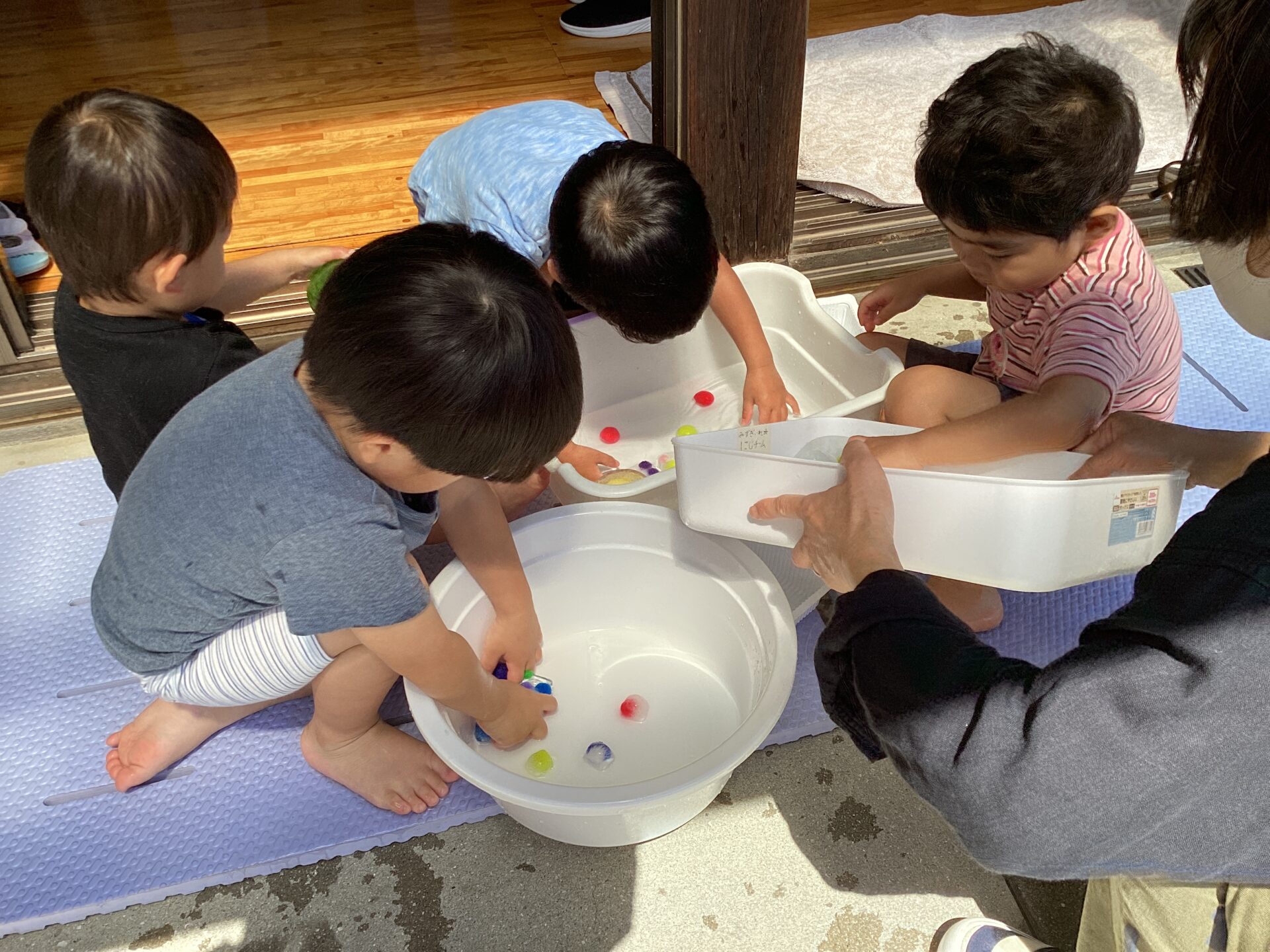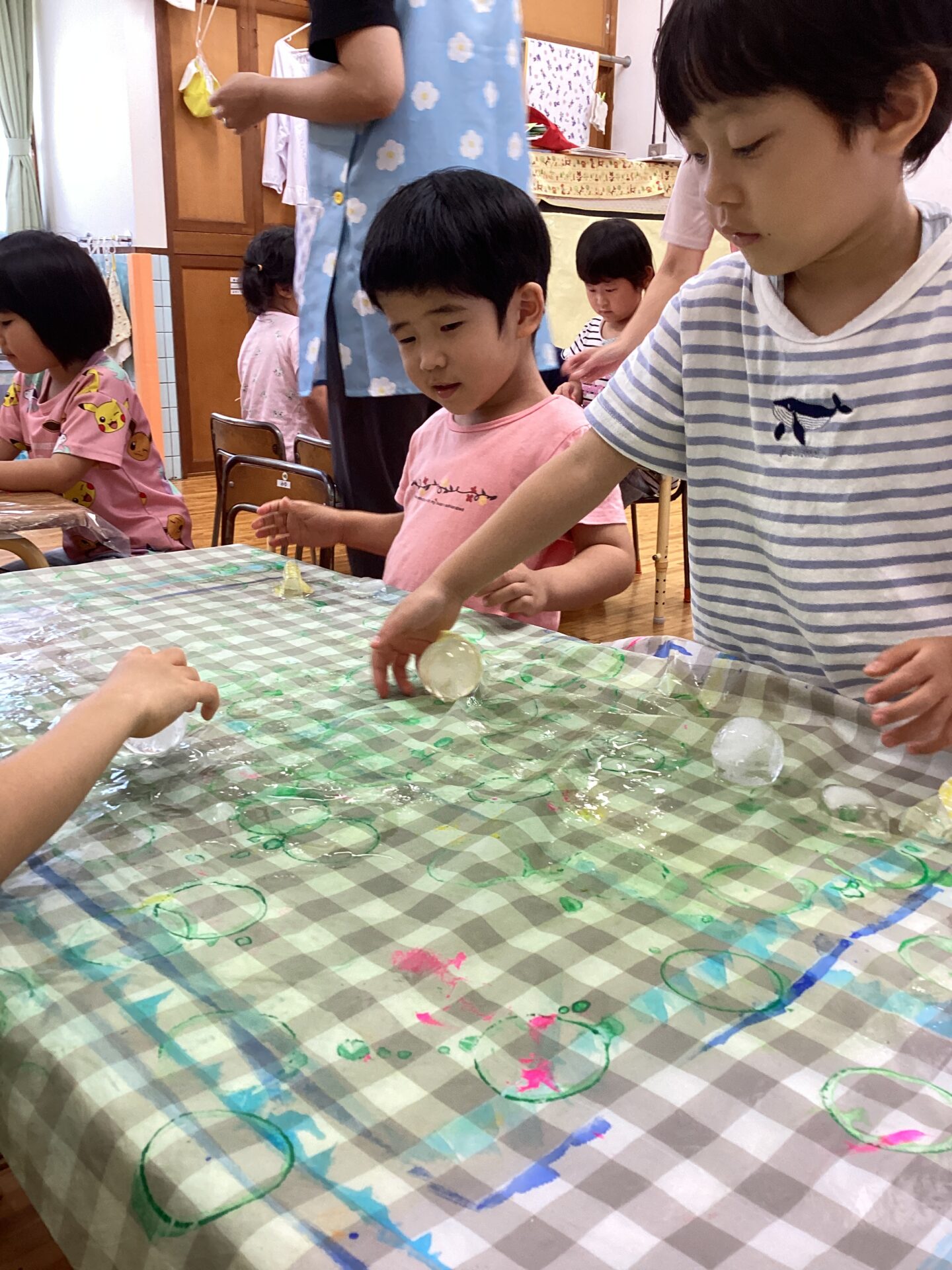 カラフルなデコレーションボールを入れた氷に子どもたちは夢中でした。