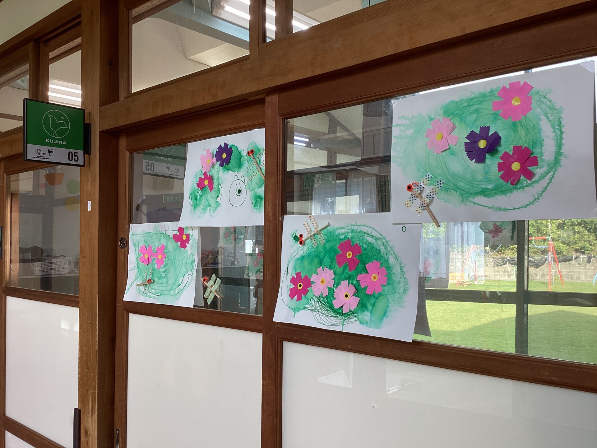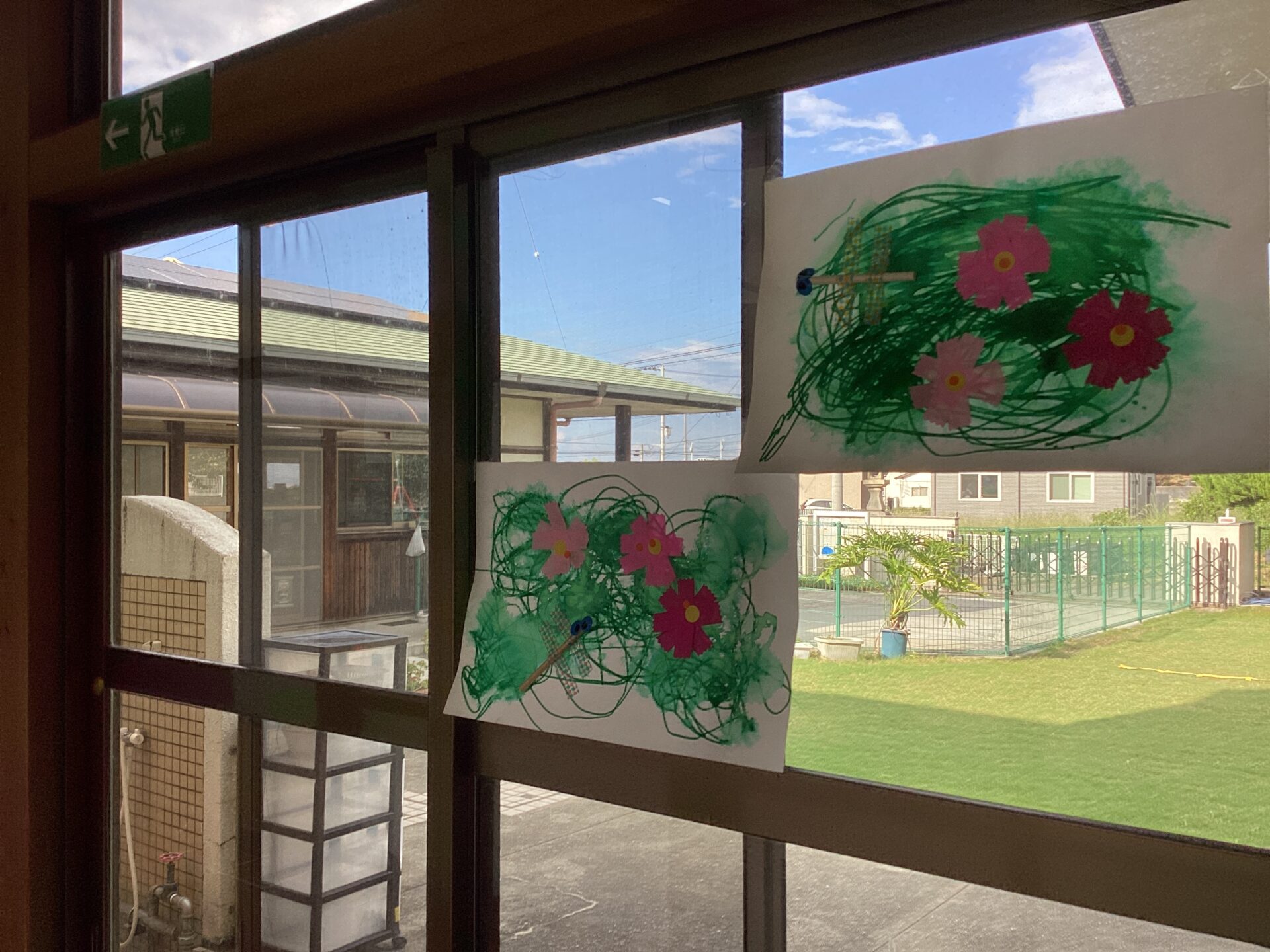 廊下の窓に飾りました。とても気持ちよさそうに飛んでいますね。