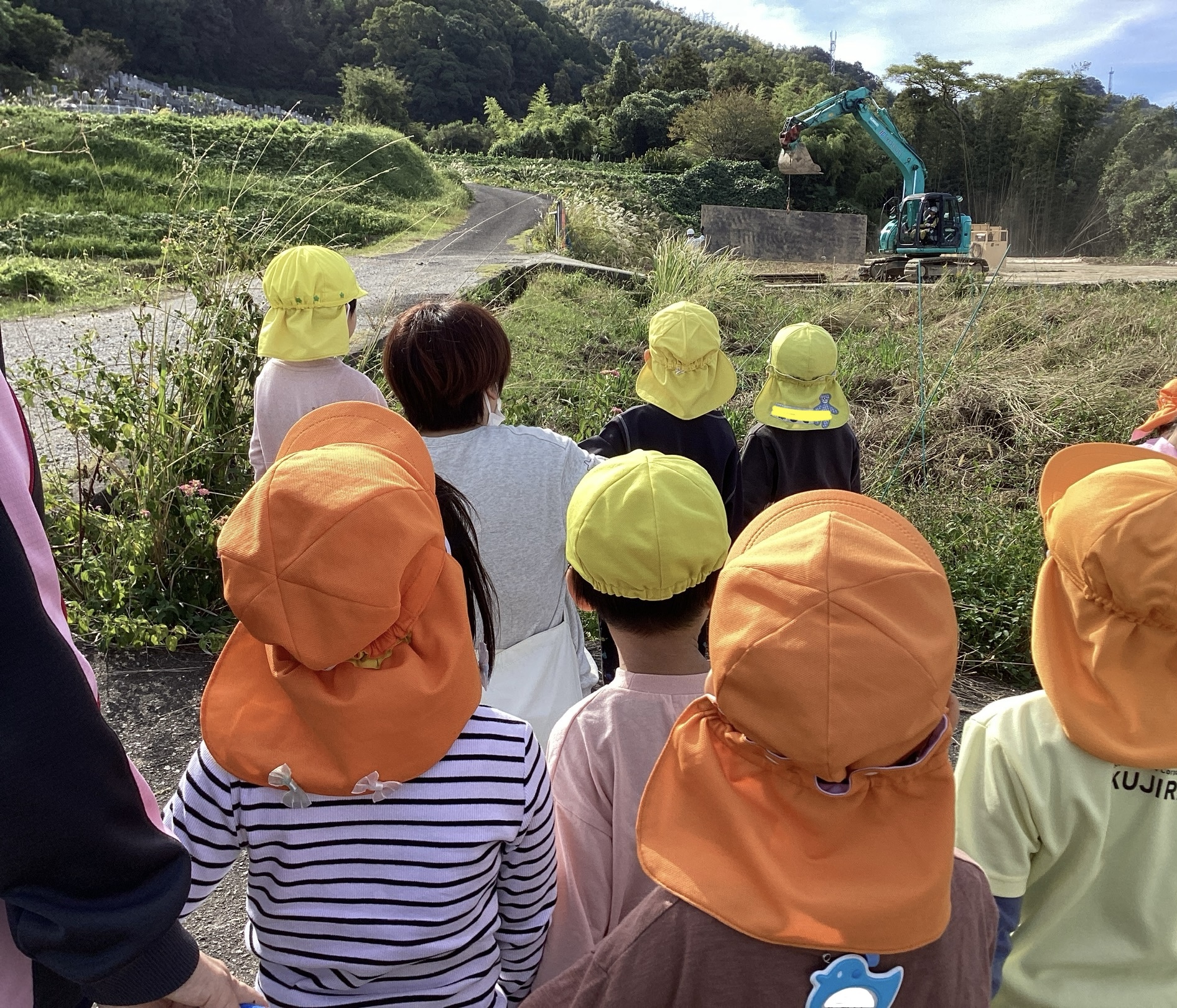 道中は、紅まどんなや柿、カモにパワーショベルを見て、「みてみてー」がたくさん聞かれていましたよ。