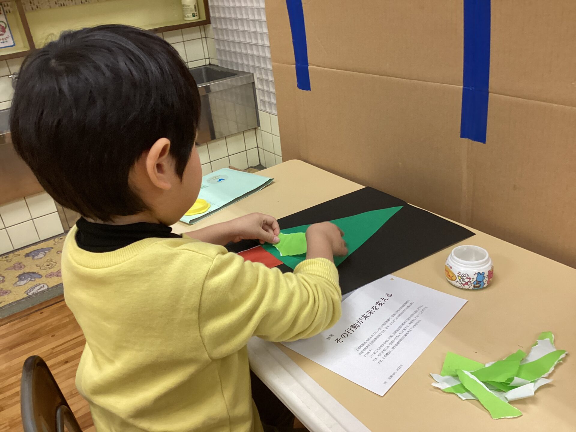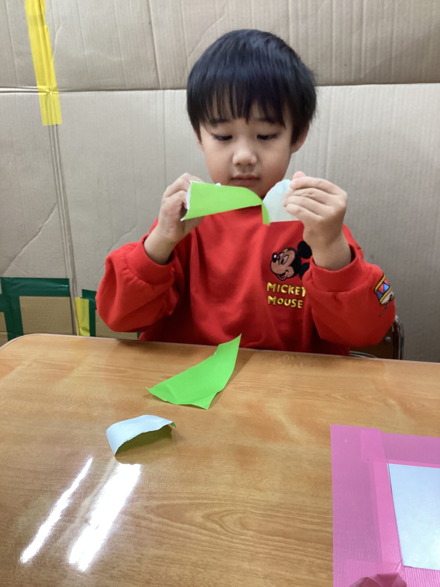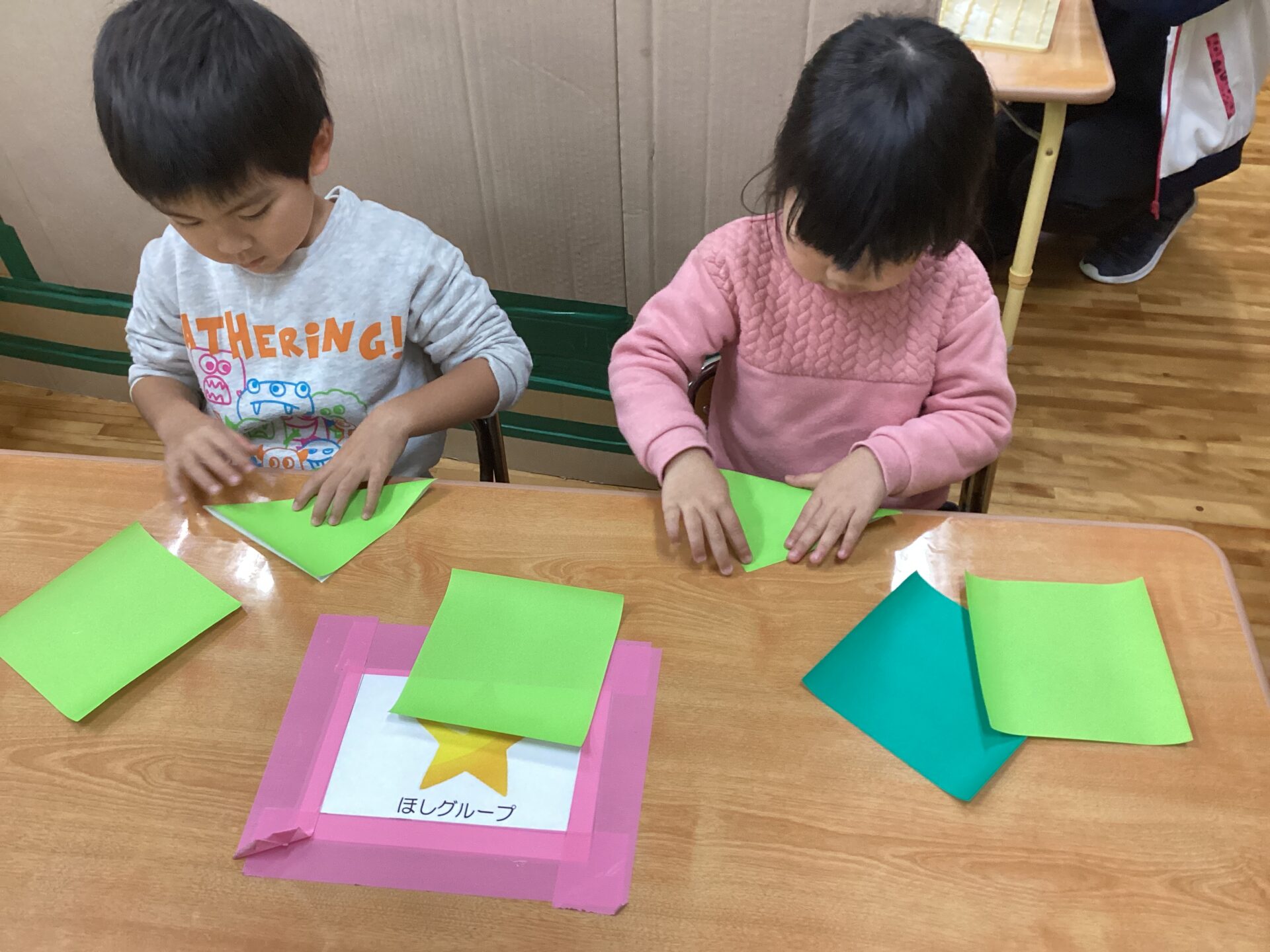 2種類のツリー(破る・折る)を子どもたちに合わせて用意しました。