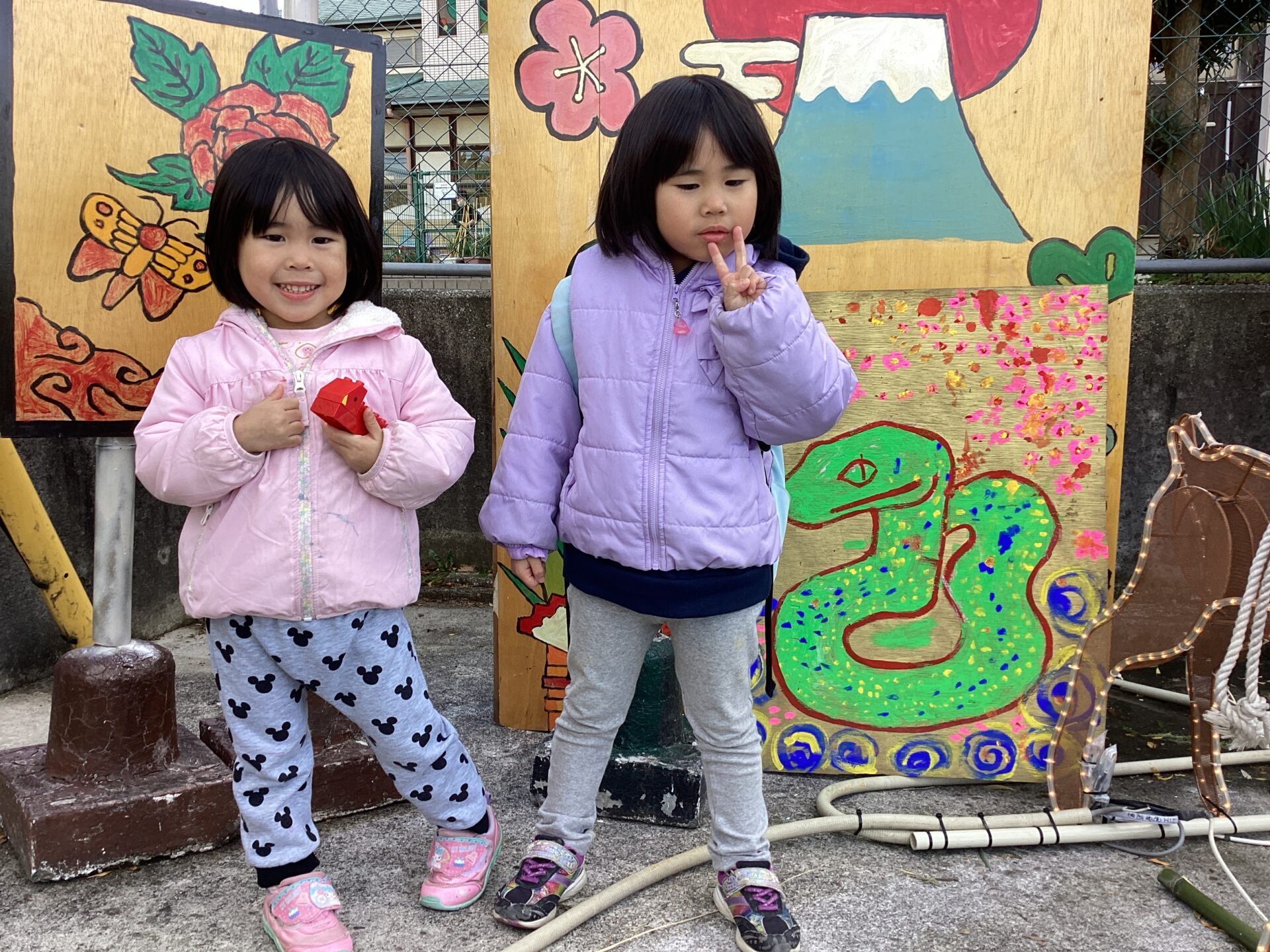 元気なお顔の子どもさんに会えて、職員一同うれしかったです。朝から「今年もよろしくね」「あけましておめでとう!」と年始のご挨拶をする姿が見られ、(えらい!ステキ!と成長を感じました。)「今年もよろしくお願いします」の挨拶をみんなで交しました。