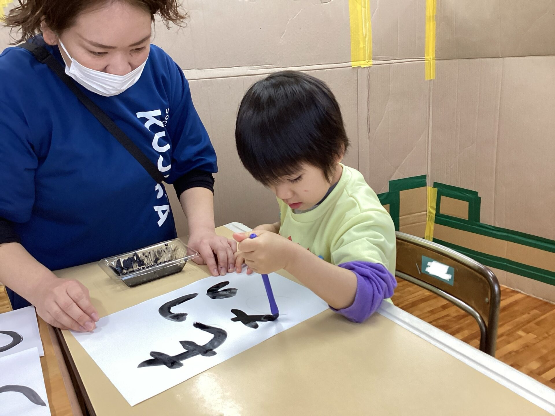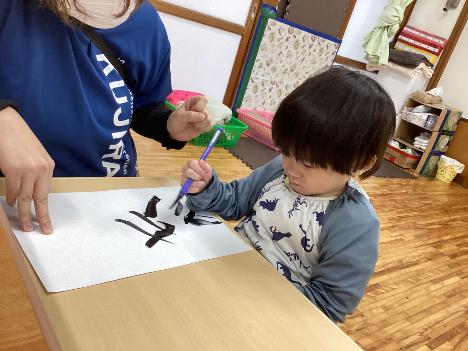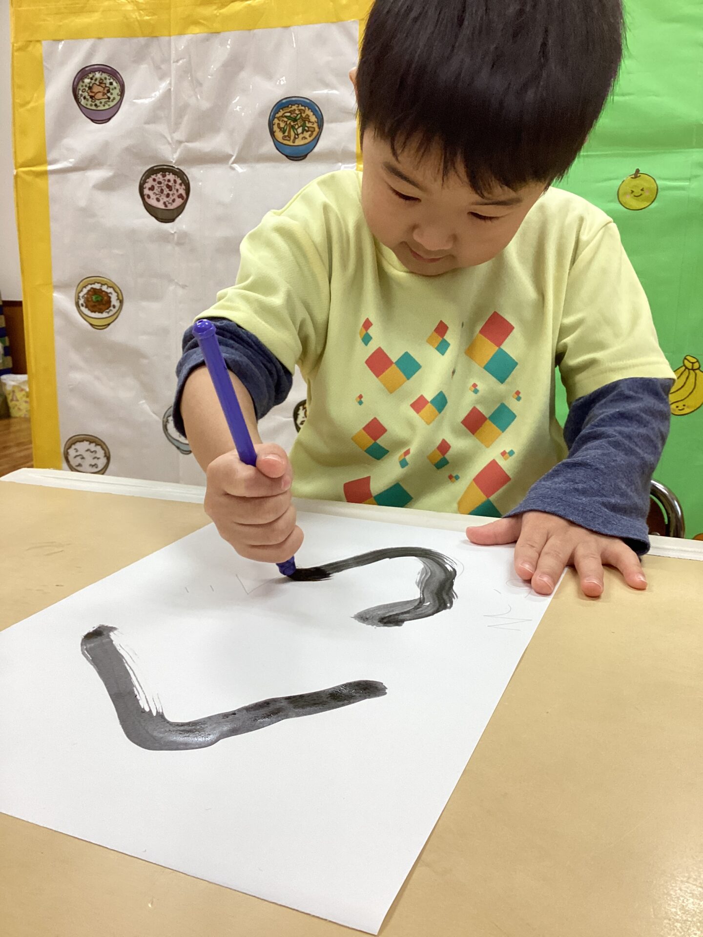 筆をしっかり握って筆先に注目して、真剣な表情ですね☺️