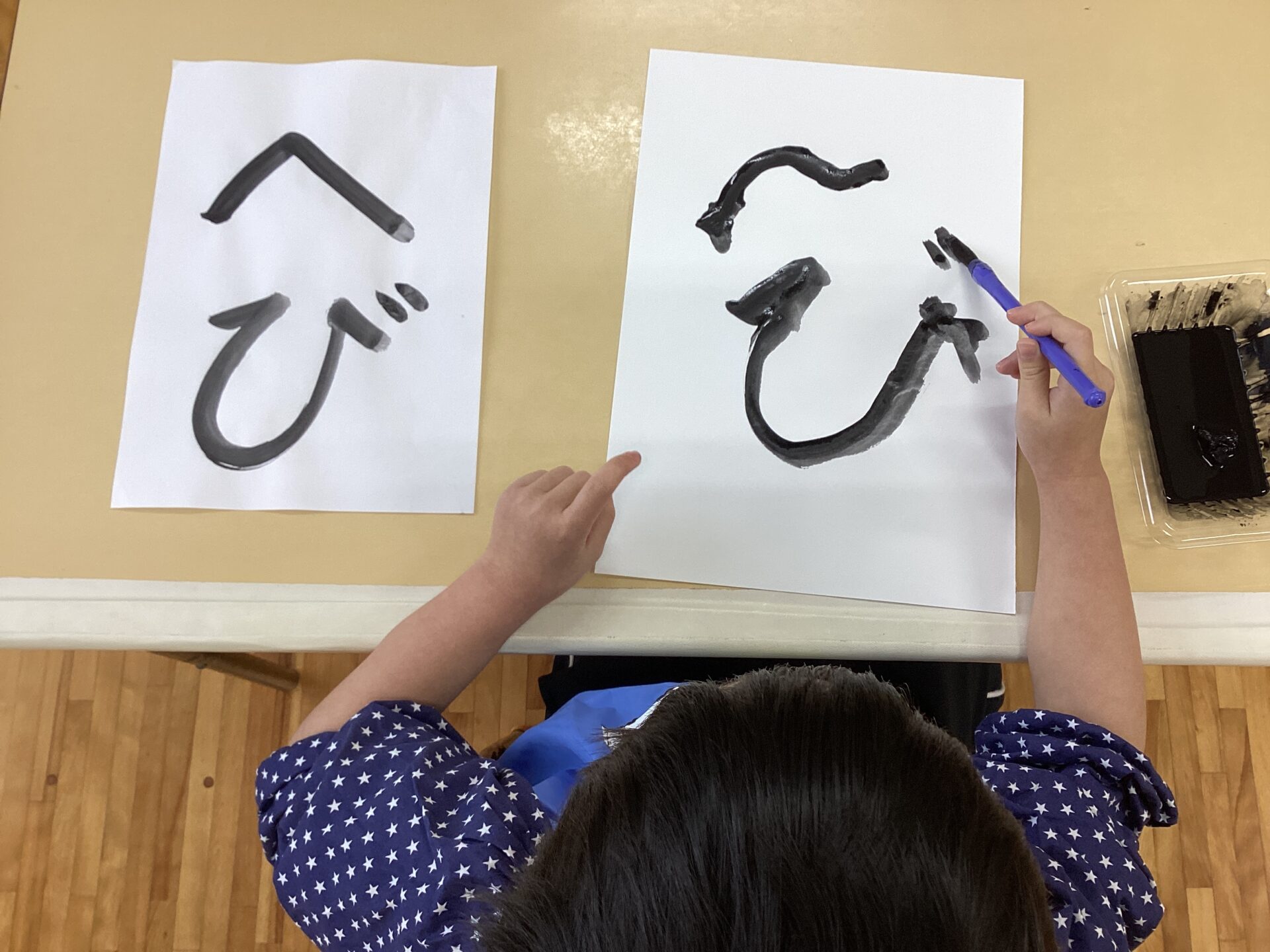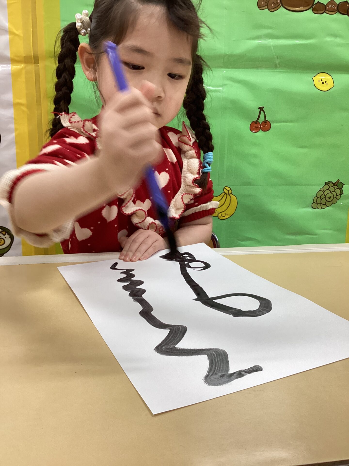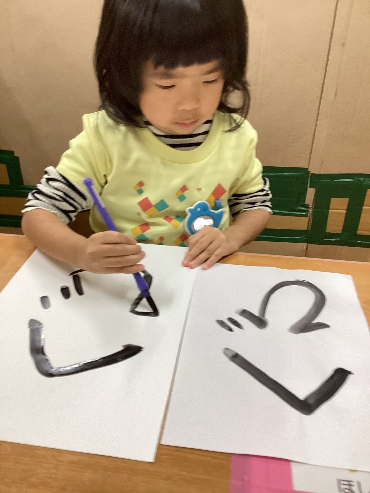 筆をしっかり握って筆先に注目して、真剣な表情ですね☺️