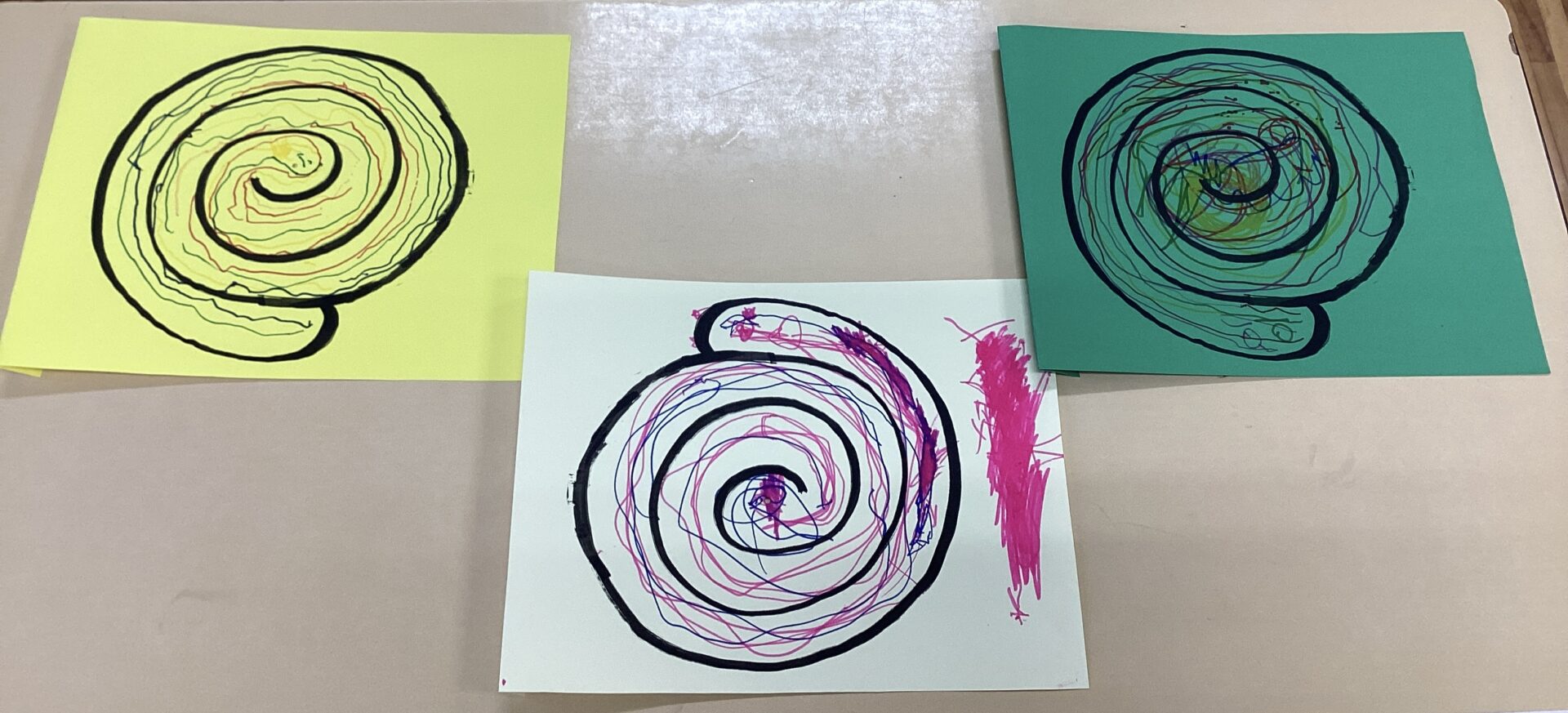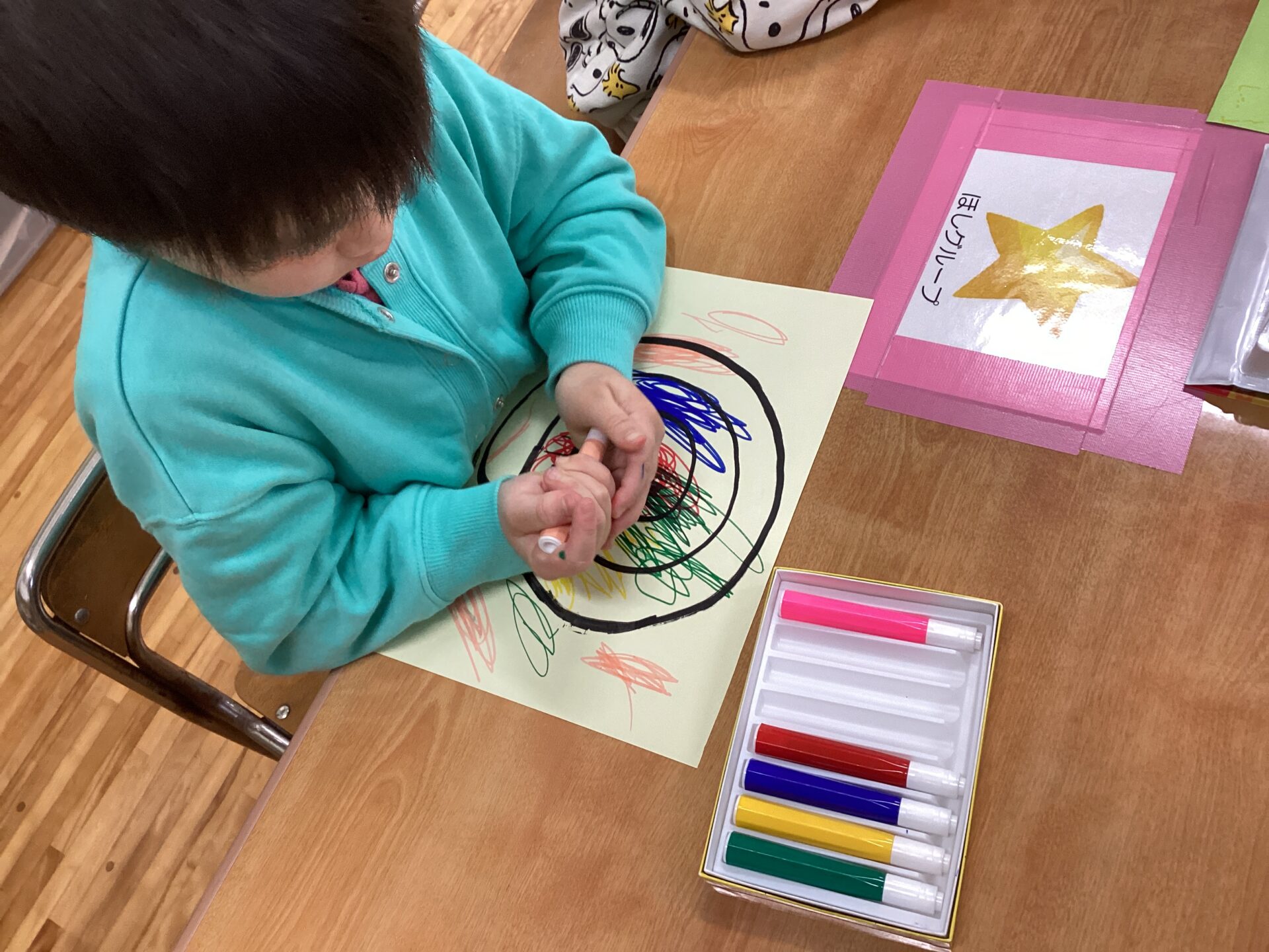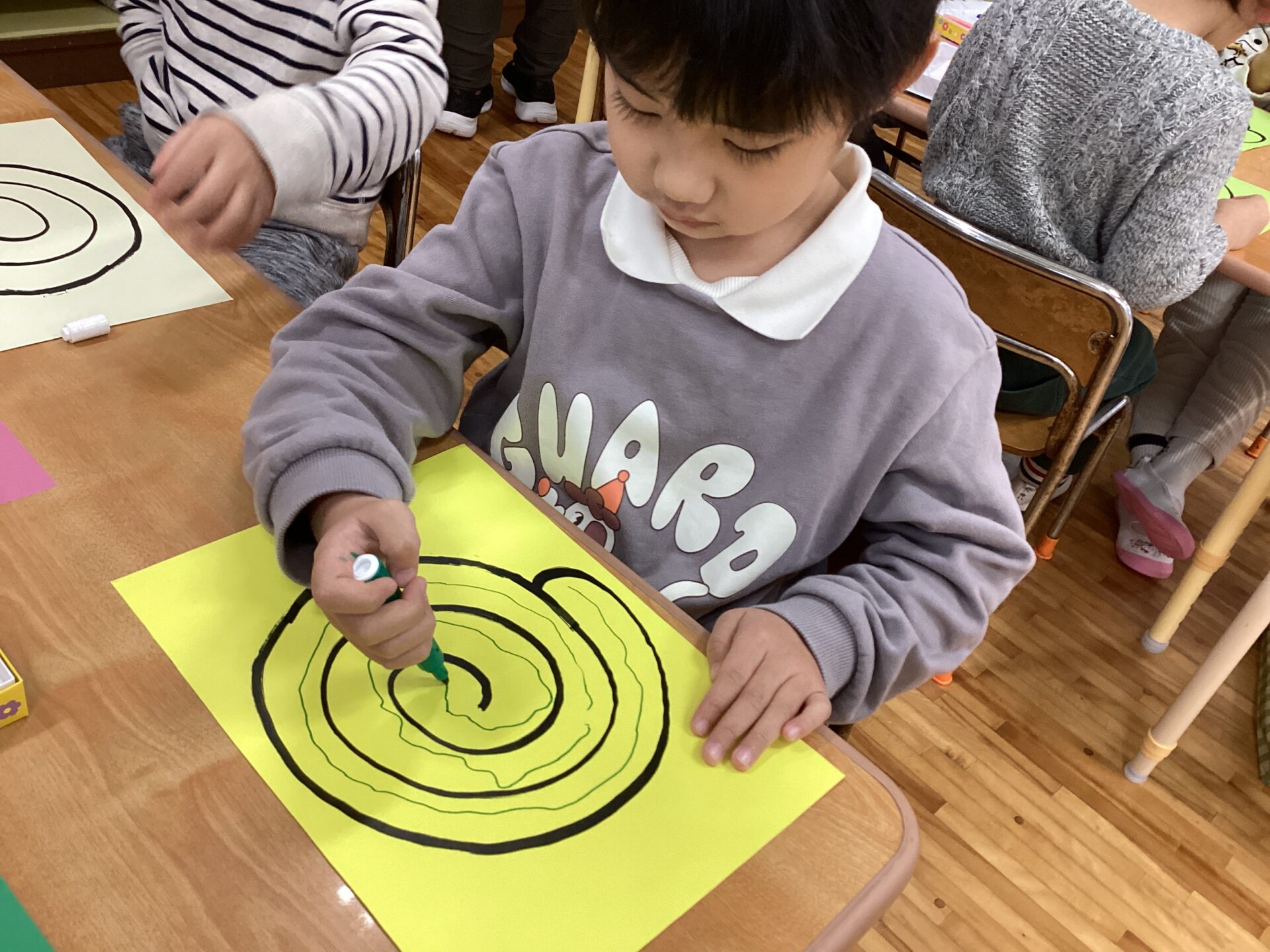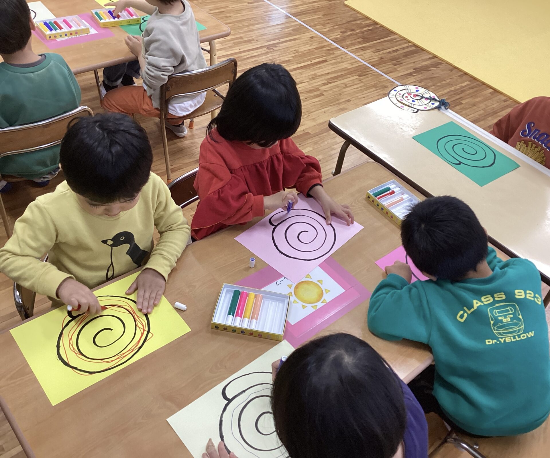 まずは、見本を見ながら自由にお絵描きです。