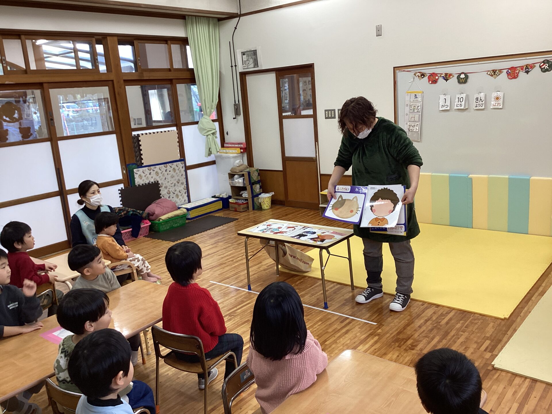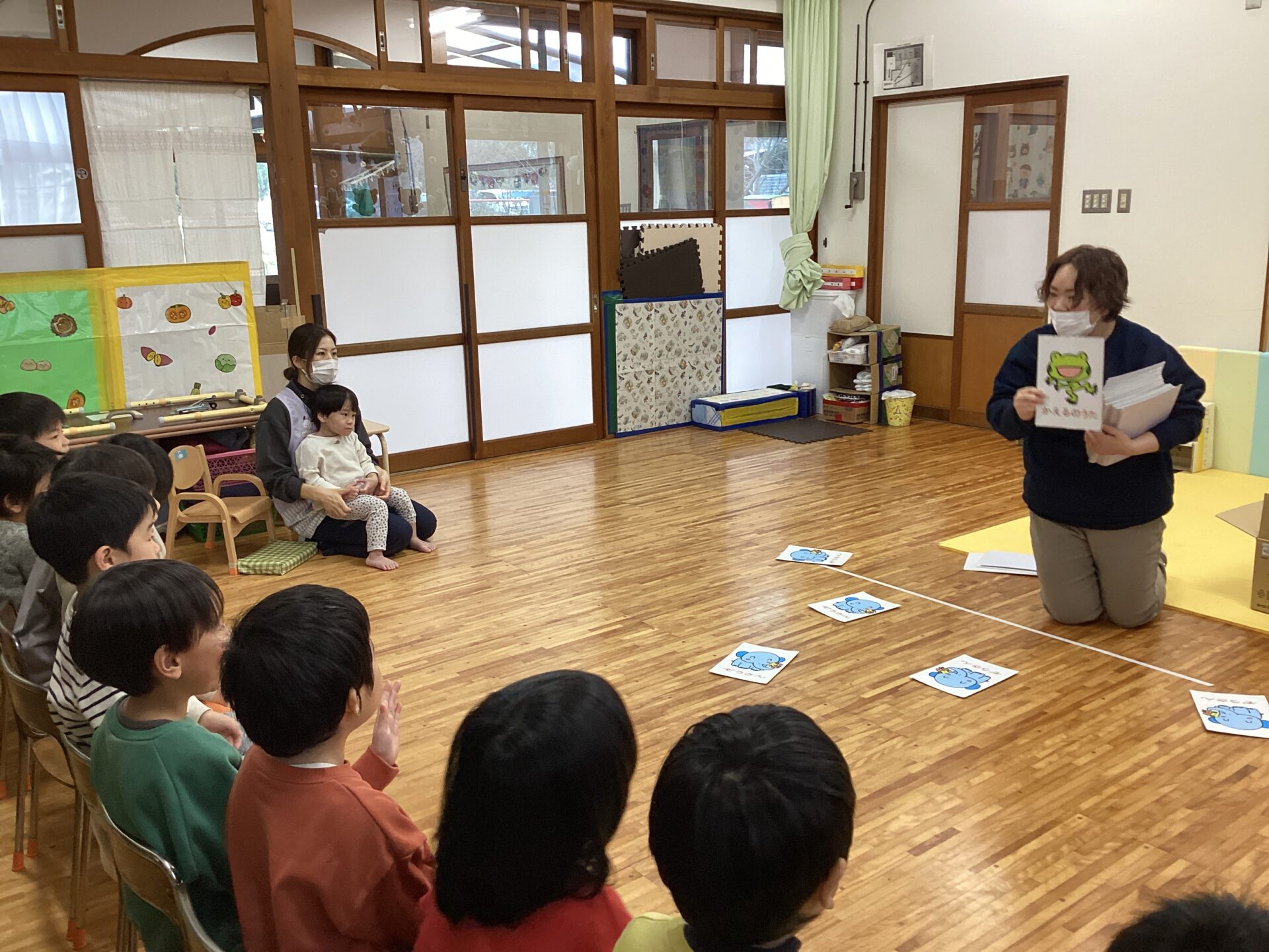 事前に「この知っているいるかな?」とイラストを見せて問いかけると「知っているよー」と歌ってくれる場面もありました。