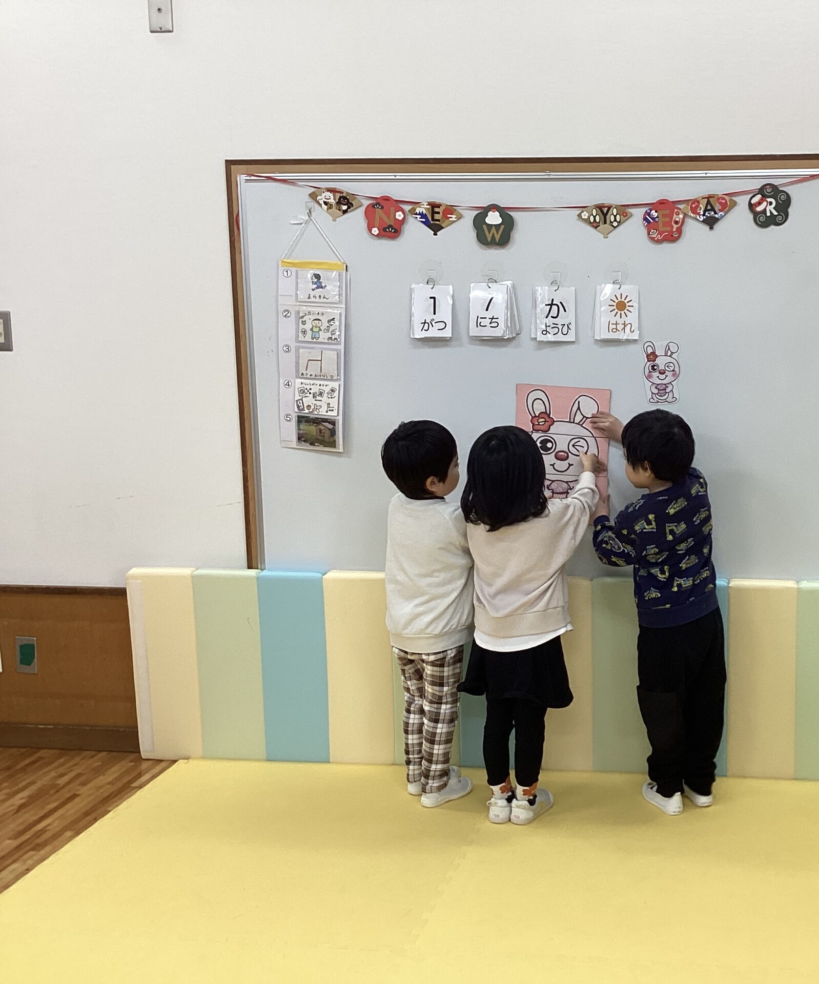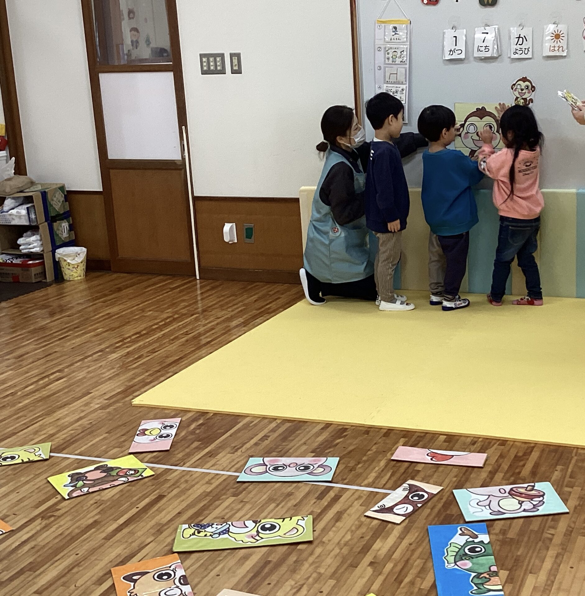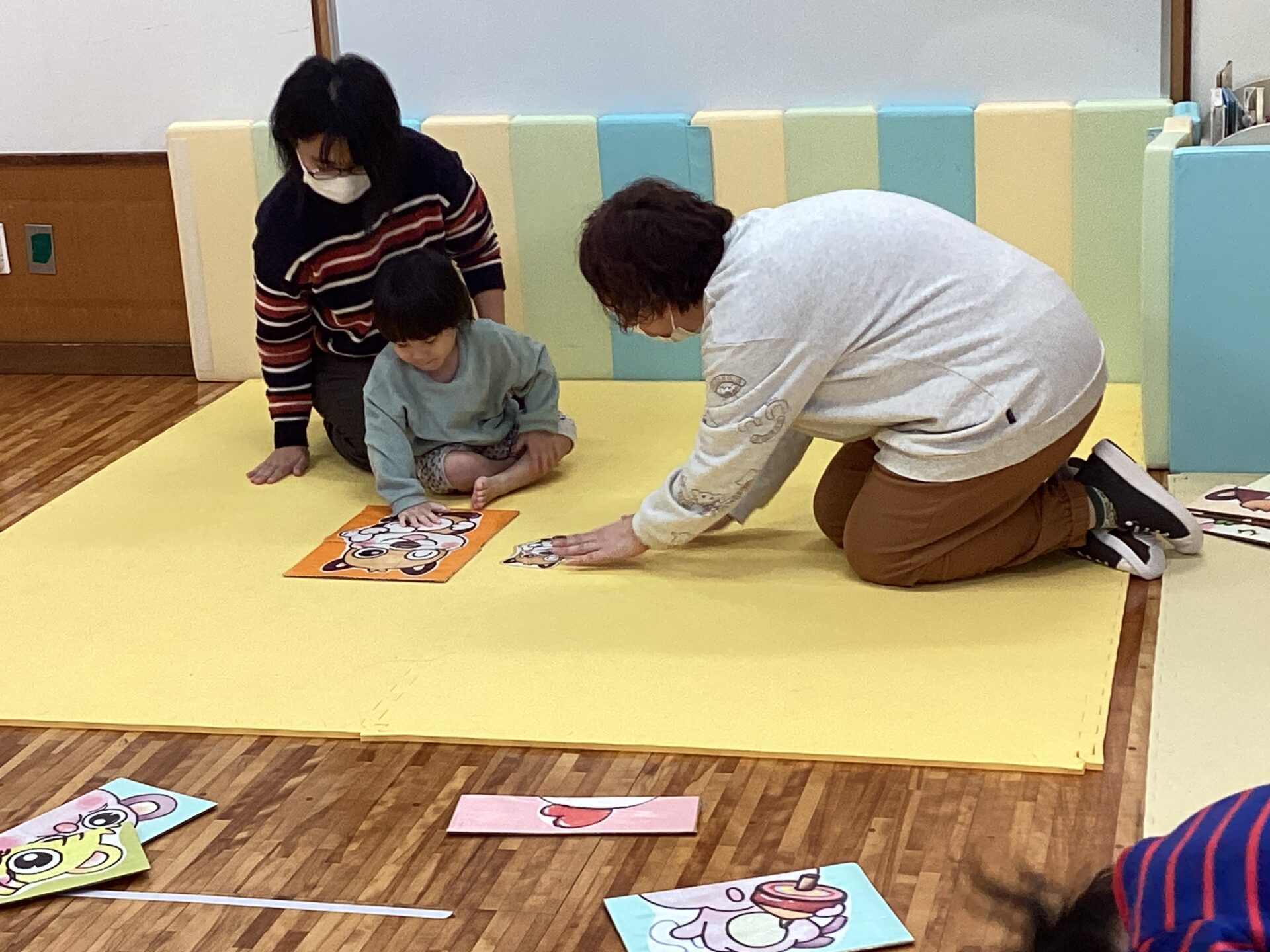 友だちと協力して、同じカードの絵を取り、みんなで合わて、干支のかるたを完成させることができていましたよ☺️
