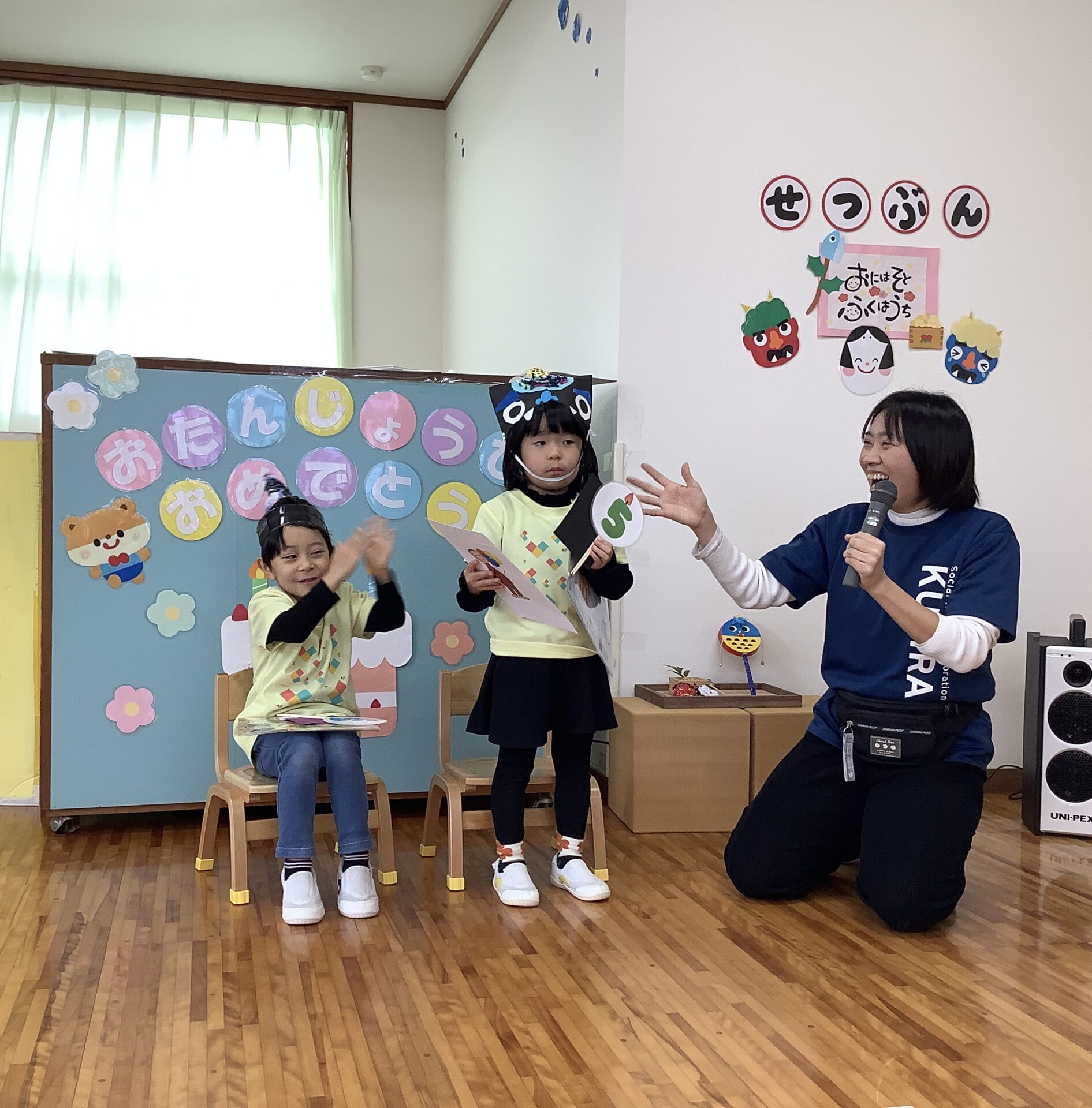 その後、豆まきの歌をみんなで歌いました。