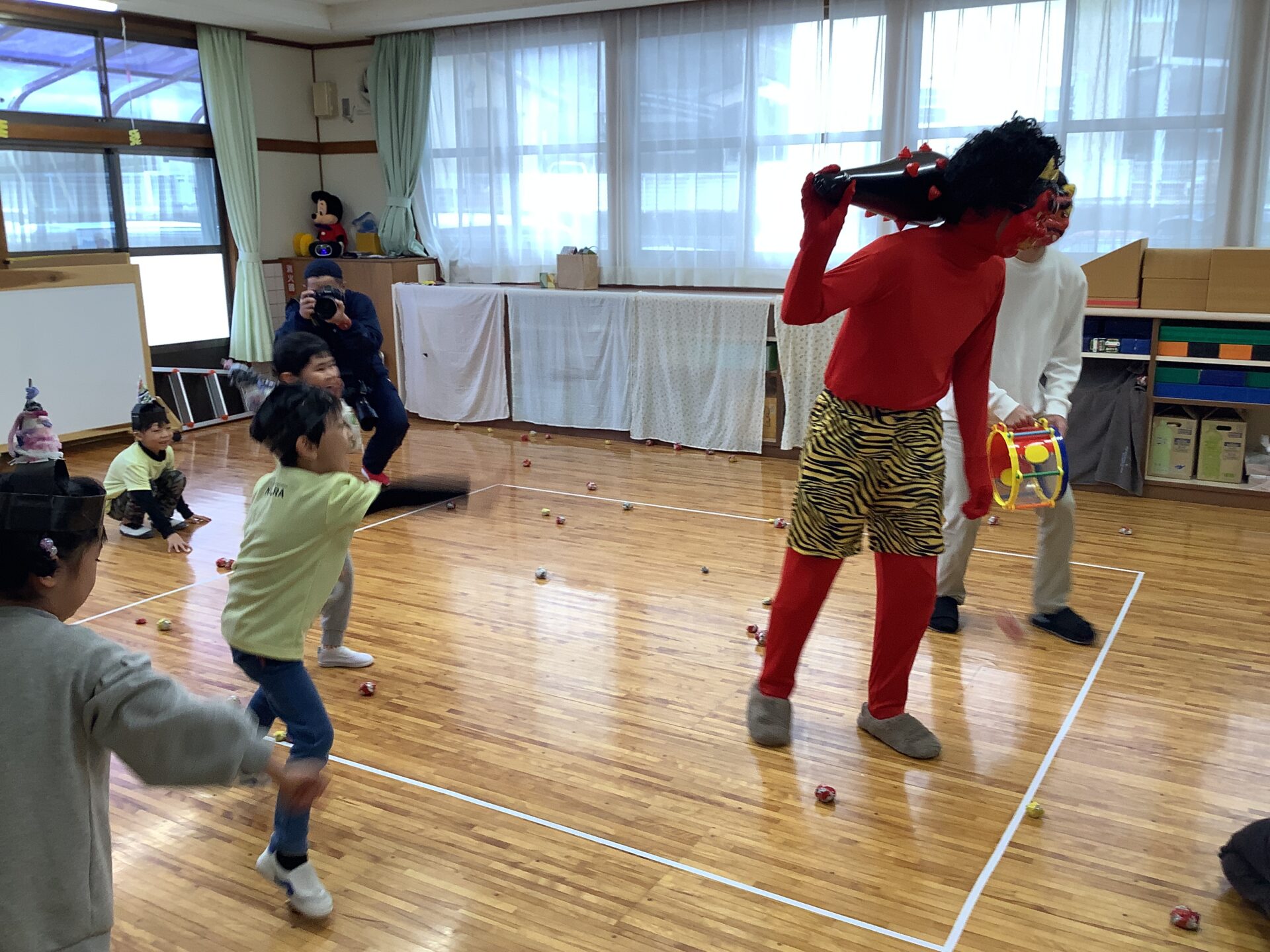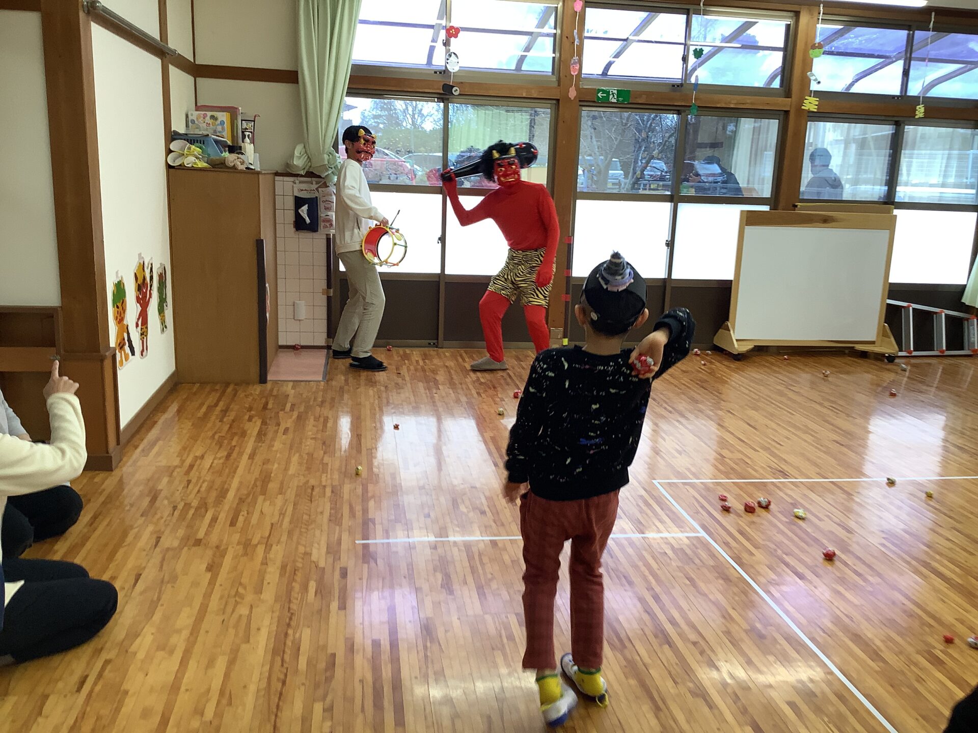 今年は前日が節分でした。ご家庭で節分のお話をされていたり、経験した内容もあったりして、「知ってるよ」「昨日お家でした!」とお話しながら注目してよく見ることができました。