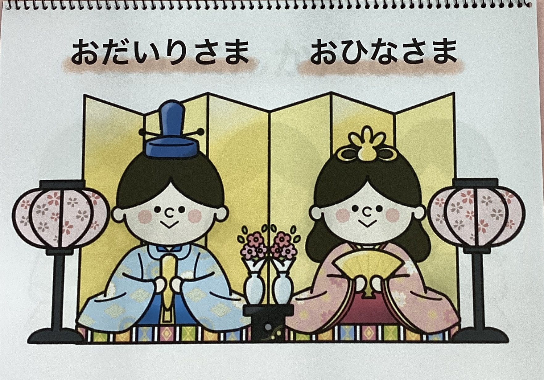 お花の中にちょこん!と可愛いおひなさまが座っています。