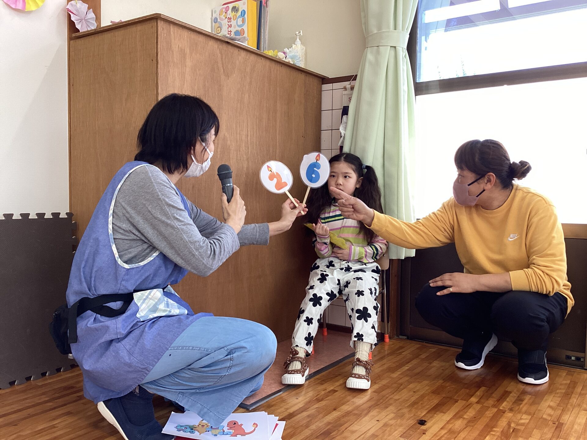 「何歳になりましたか?」の質問にカードで答えてくれるお友だちもいます😀