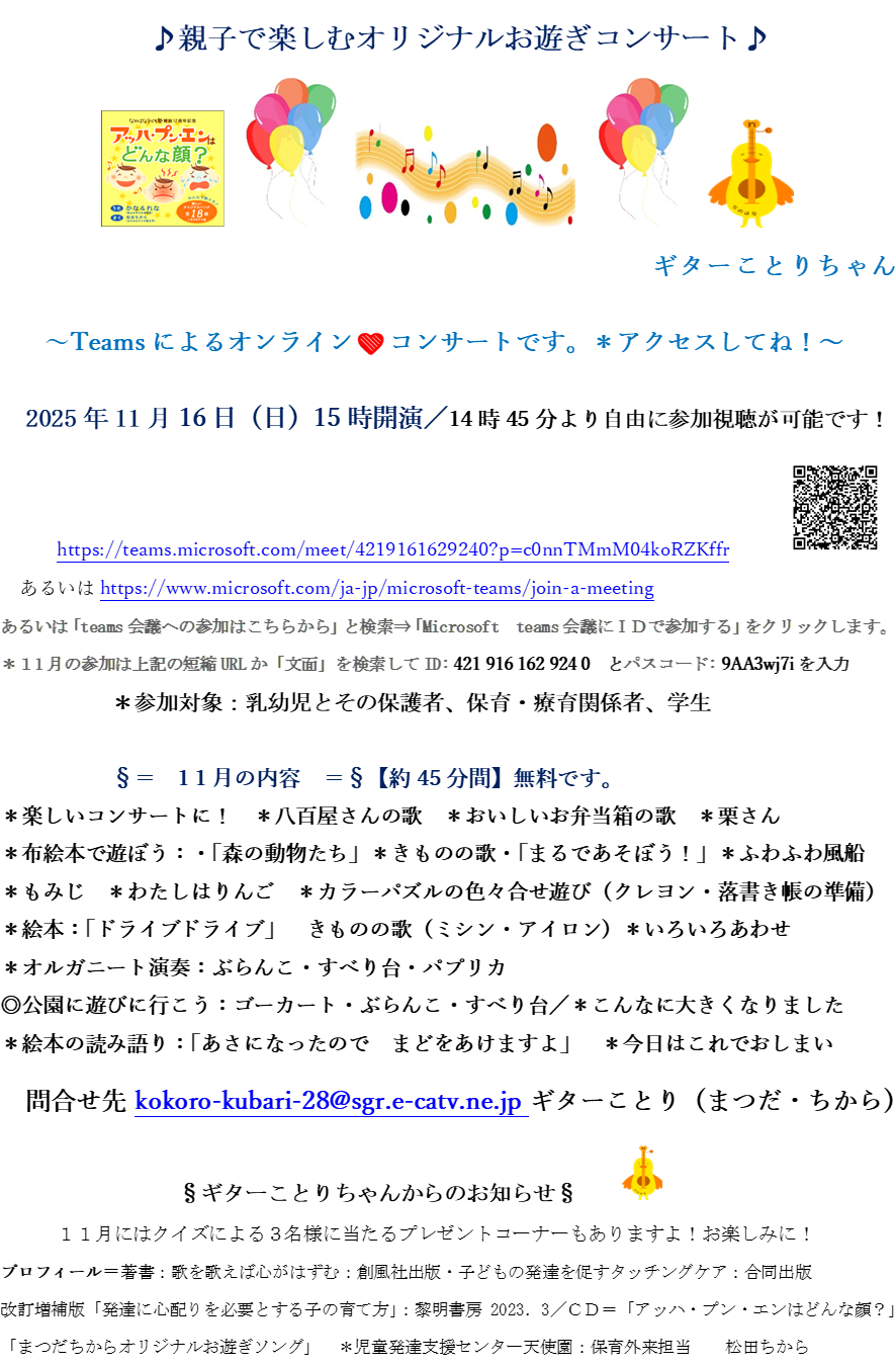 11月 親子で楽しむオリジナルお遊戯コンサート