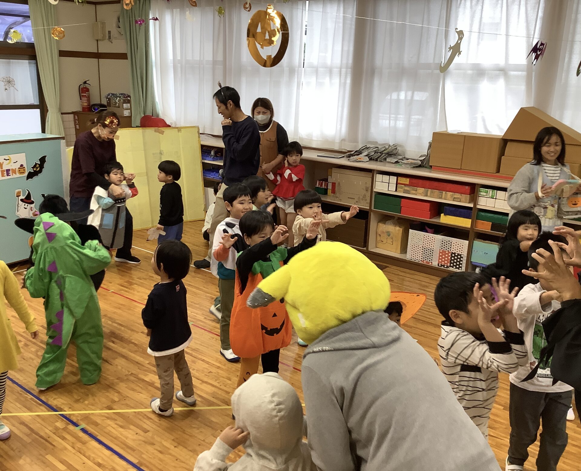 みんなで写真を撮った後は〜ハロウィンダンス‼️先生も子どもたちに負けない衣装を着てお化けに変身🎃
