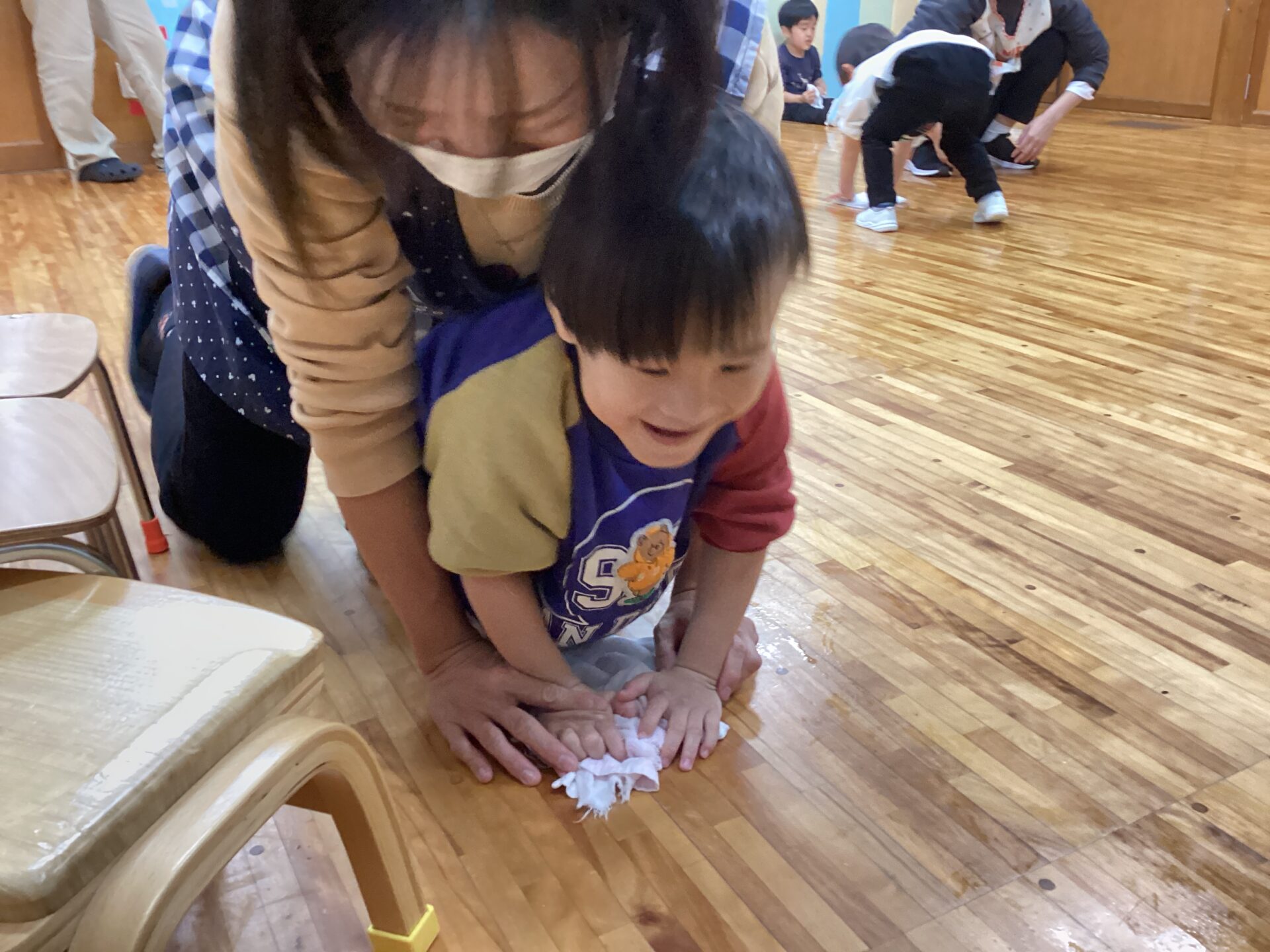 最後は、希望者をつのり、雑巾がけレースをしました。