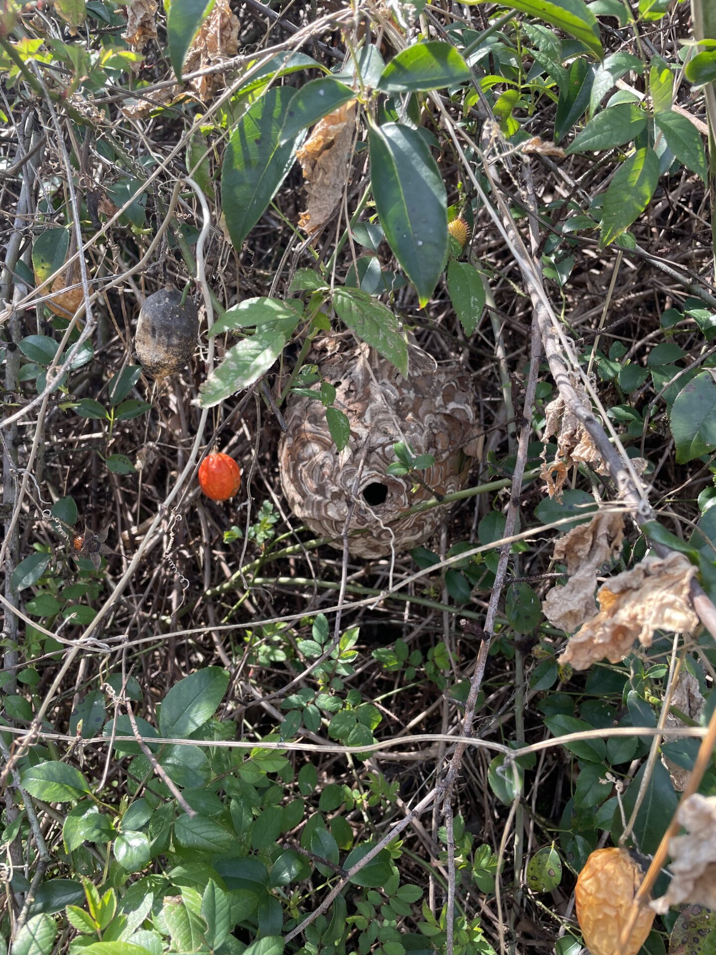 園児とのお散歩中にハチの巣が見つかりました。