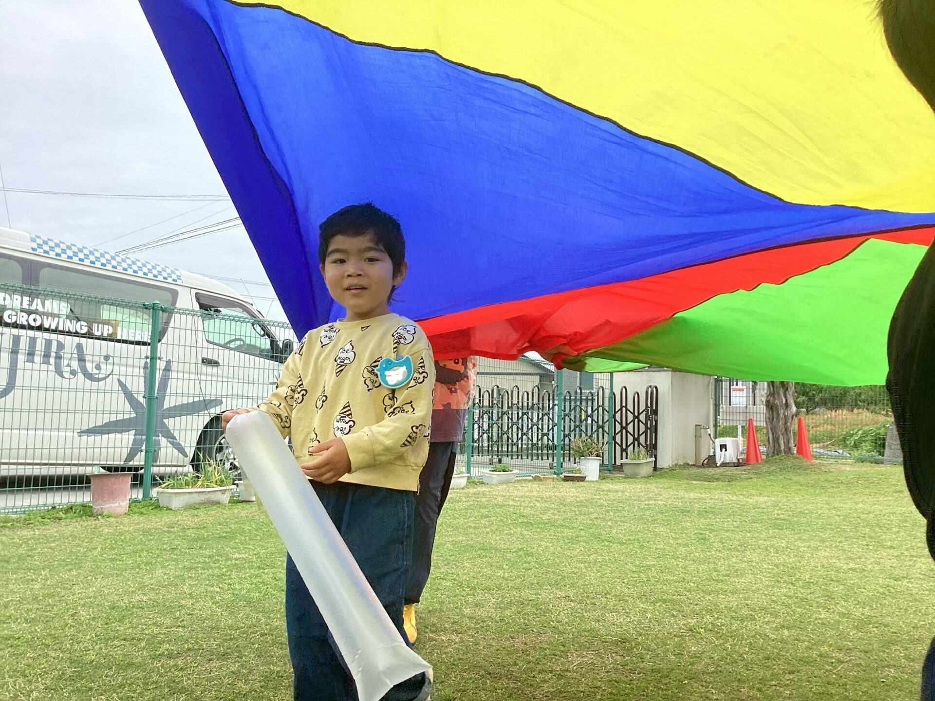 それから、バルーンも登場😆ドラえもんの曲に合わせて、なみなみ〜大きく膨らんだり小さく膨らましたりすると、上をしっかりと見て傘袋でツンツンして楽しみました😆✨