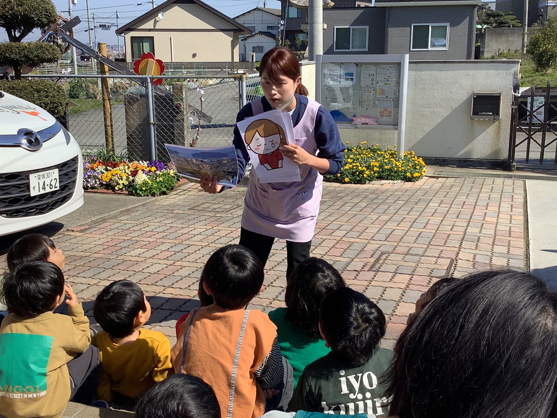 「お・は・し・も・ち」の内容が少しずつ子ども達の中に伝わって、避難の仕方もスムーズになっています。今回は「3月11日」に合わせて、地震のお話もしました。