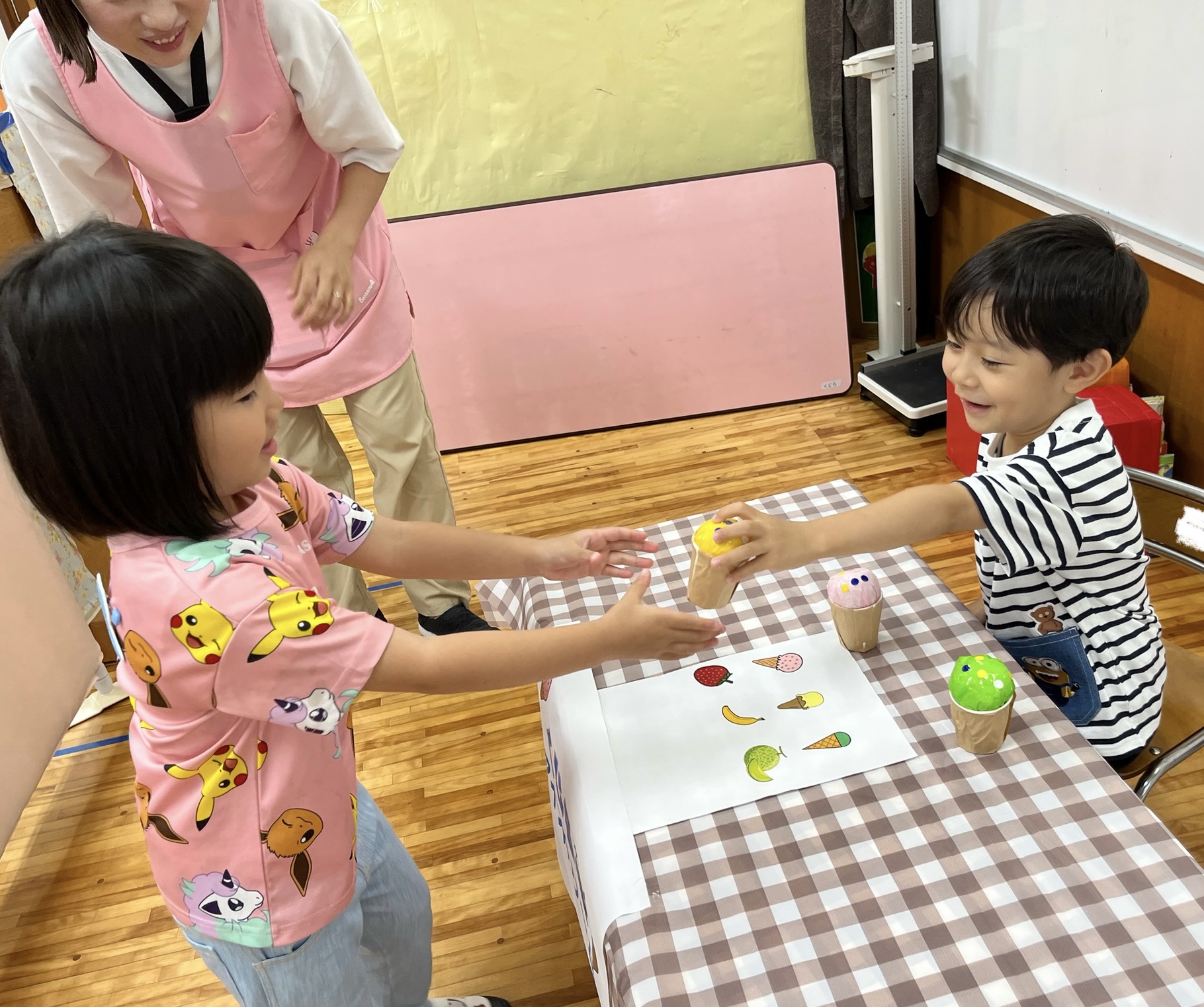 先日、くじらチームではアイス屋さんごっこを行いました。