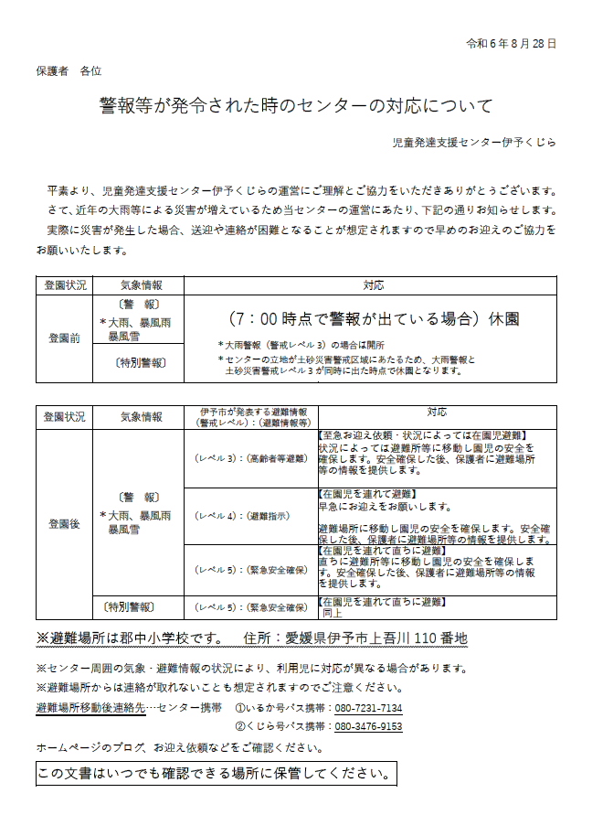 警報時の対応について