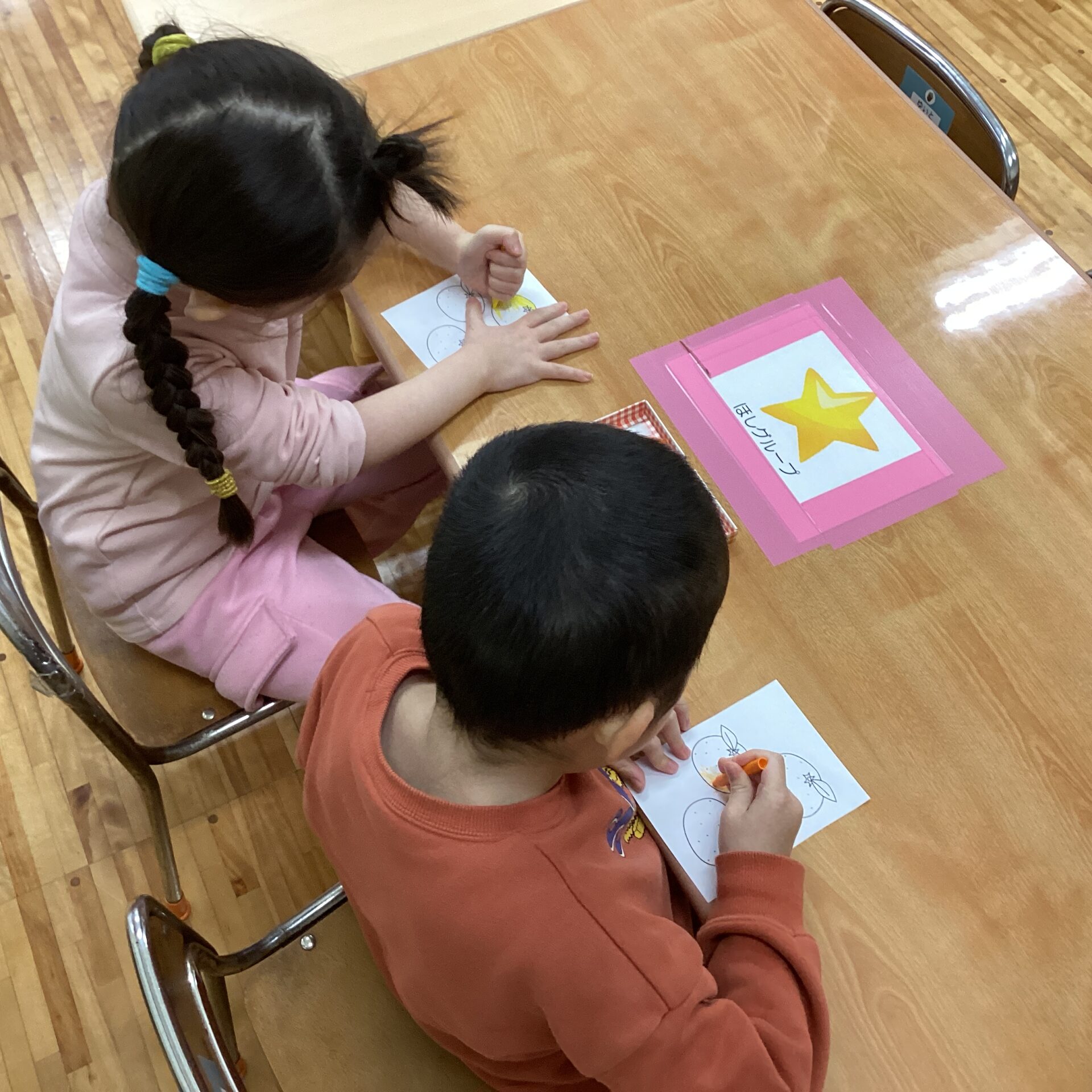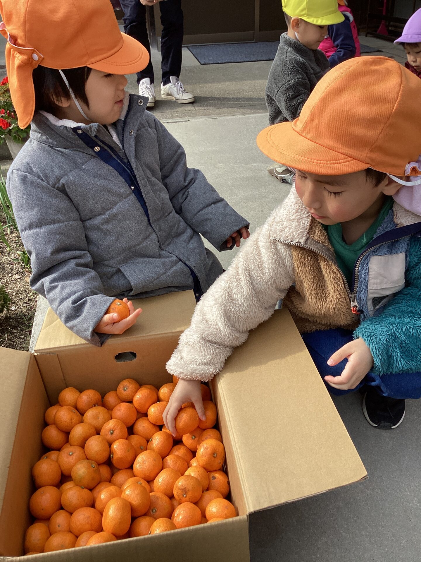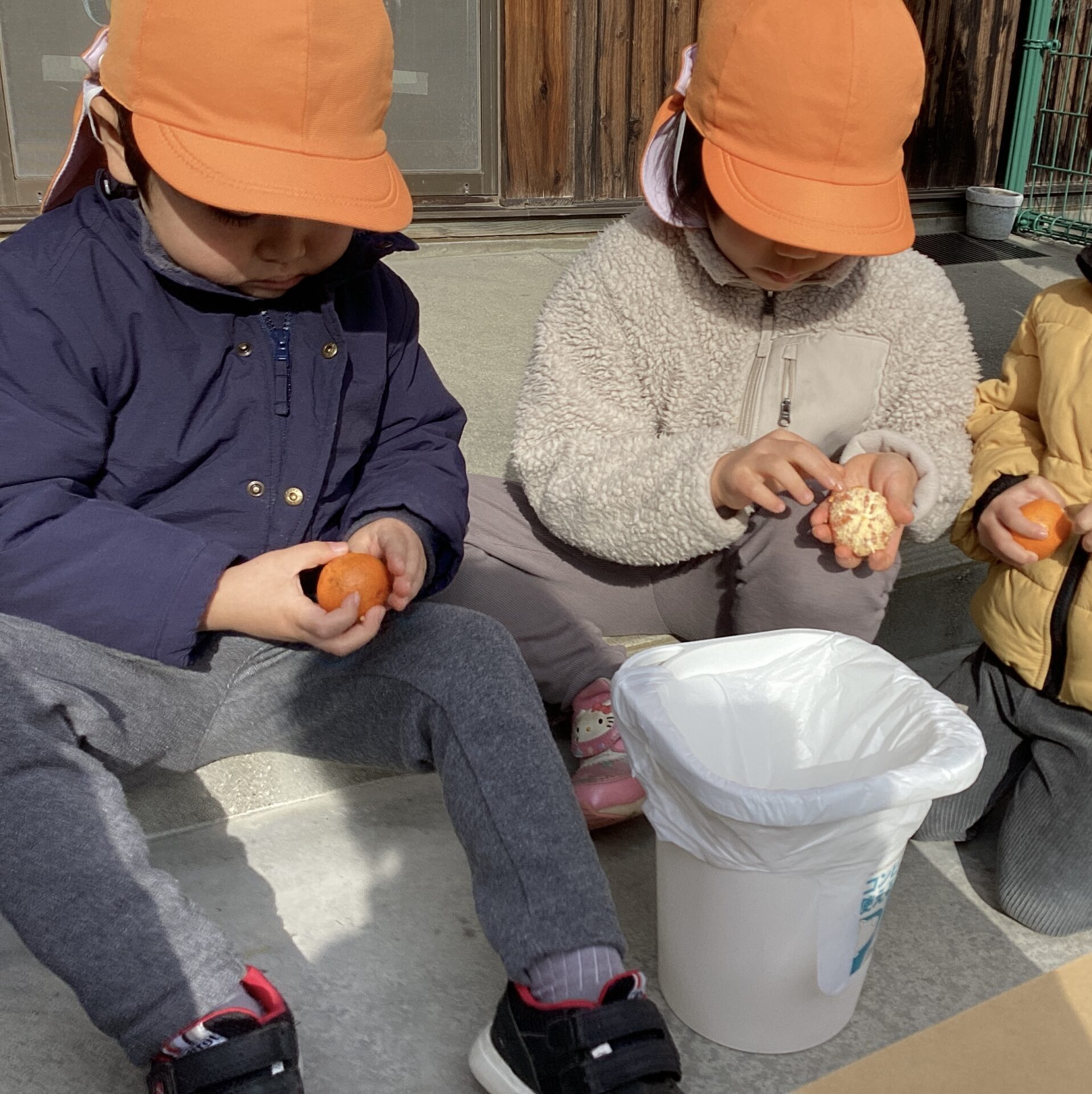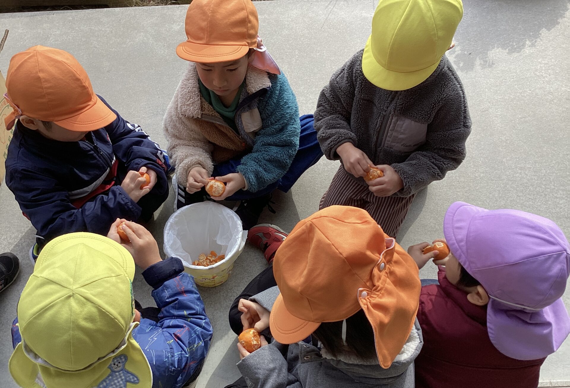 子どもたち手のひらサイズのみかんの皮を、上手にむいていますね。