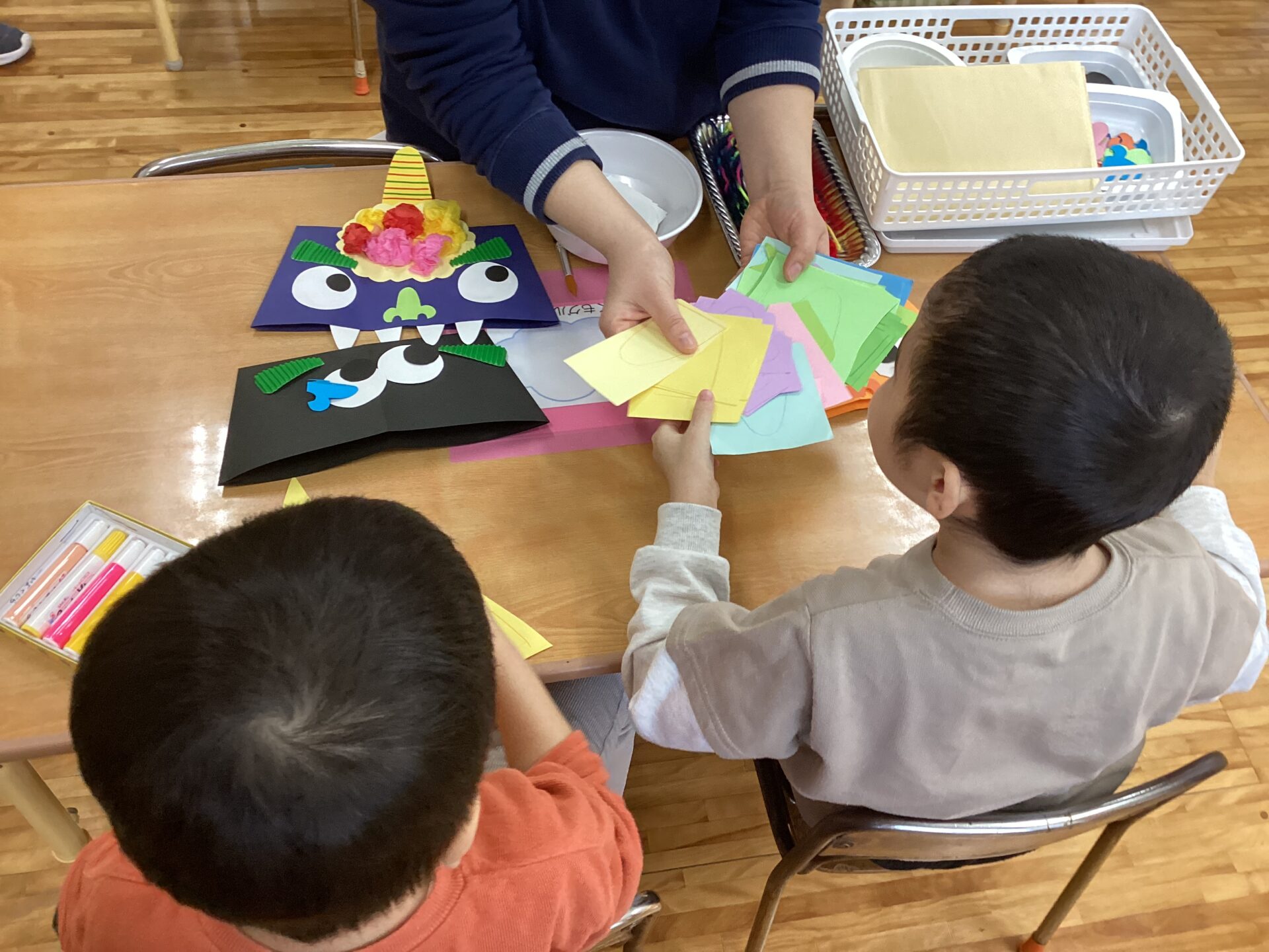 色とりどりのパーツから、好きなものを選びオリジナルあふれる個性豊かな鬼が完成しました。