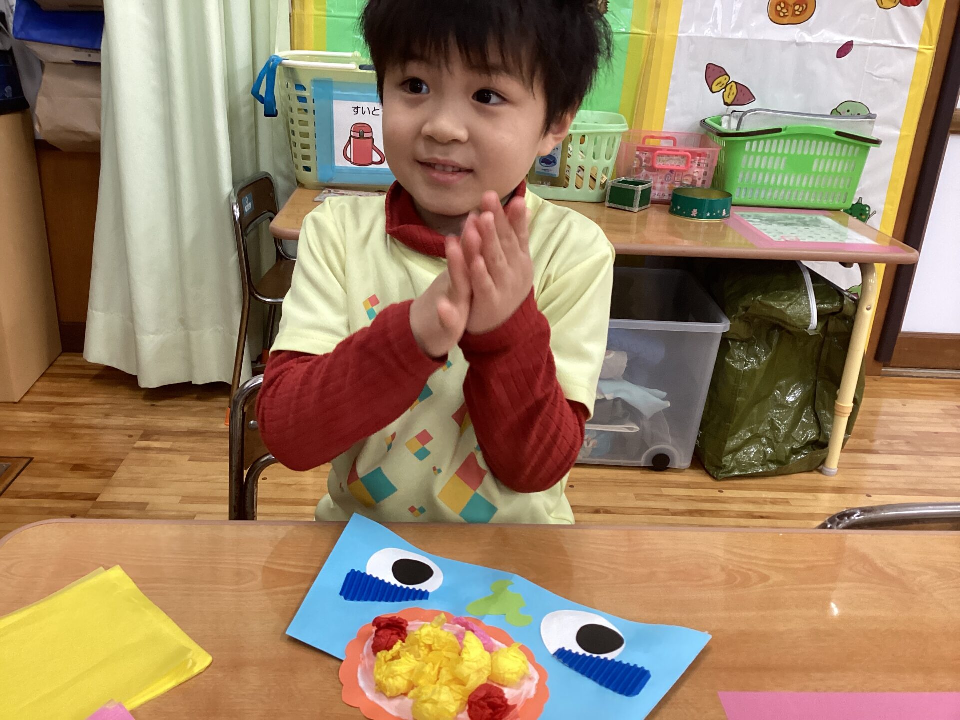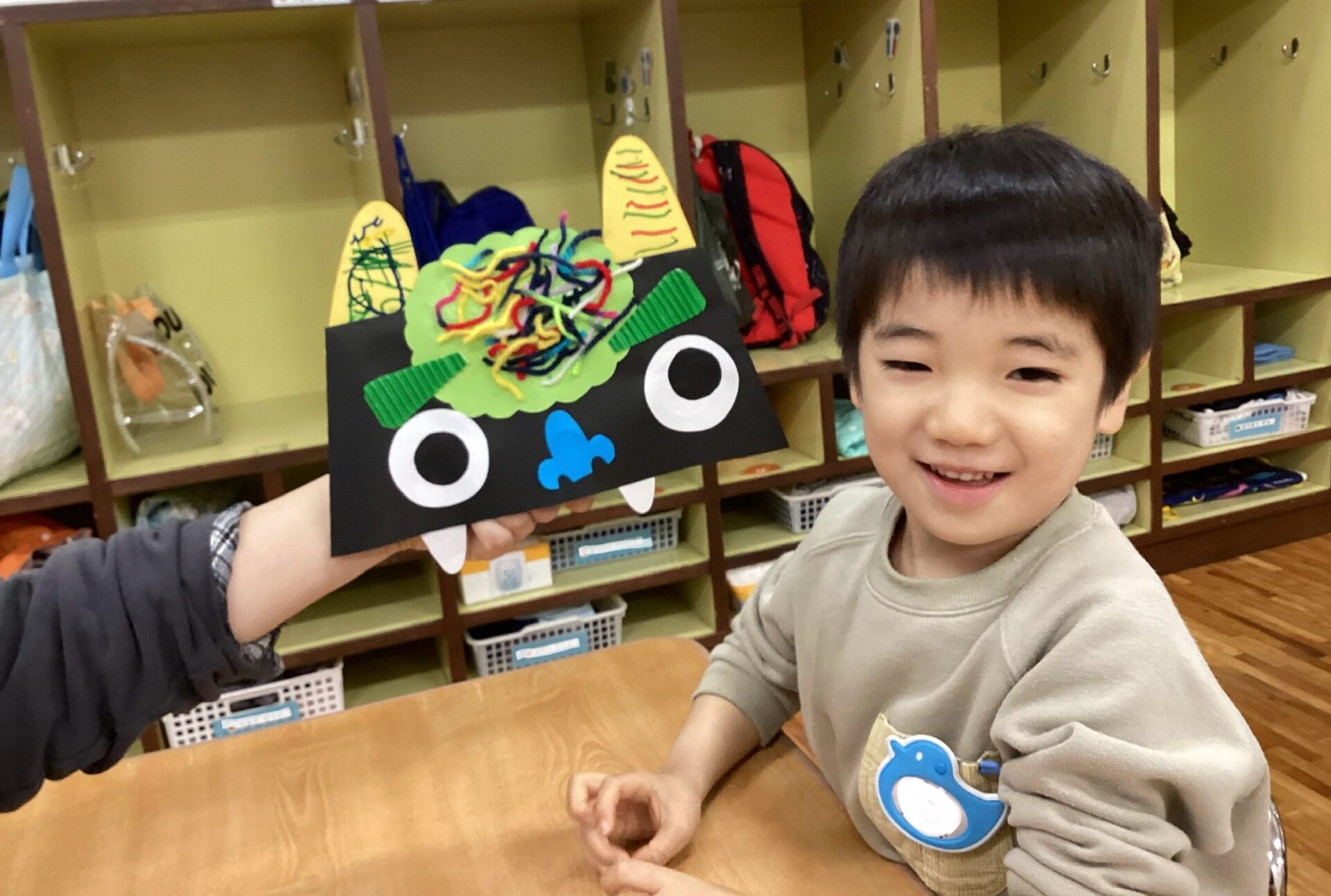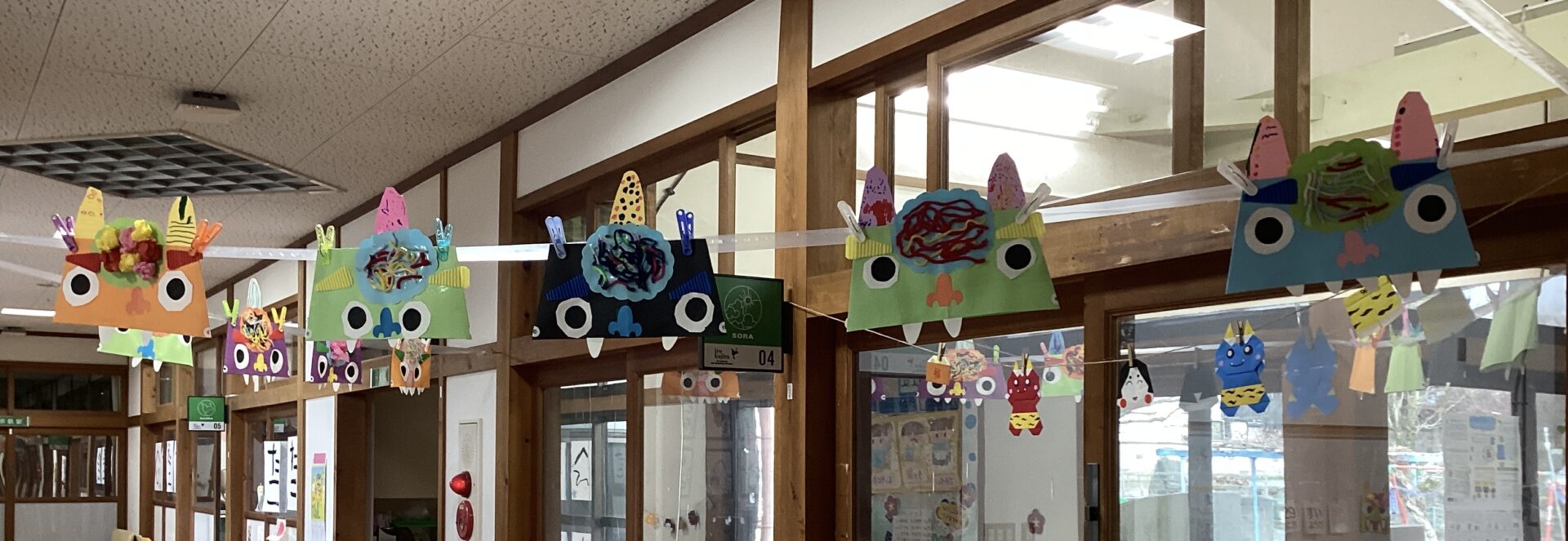 完成して飾ってある鬼をみて、「ぼくのおに!」「くろおに したー」など嬉しそうに眺めています。