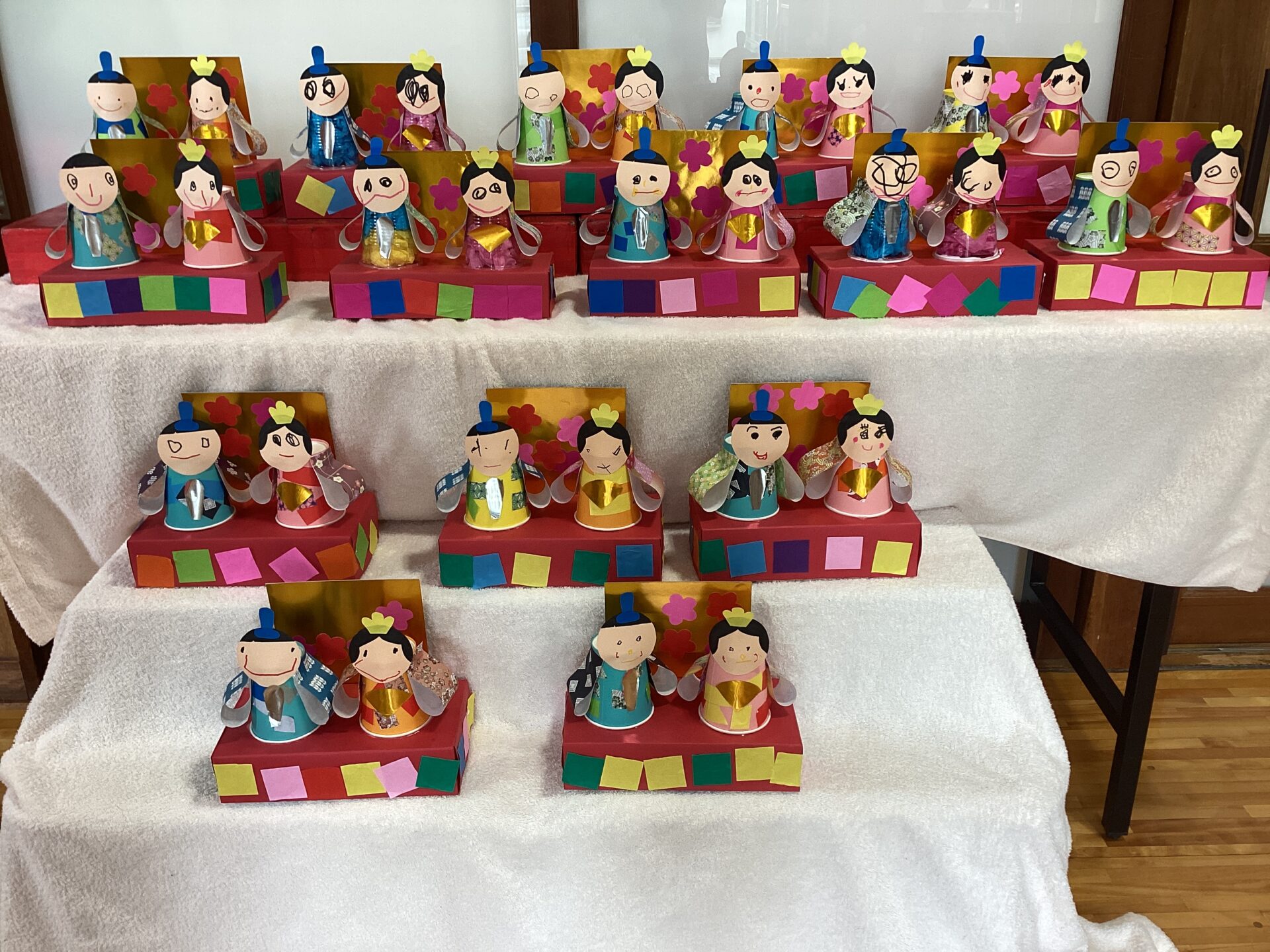少しずつ完成していくおひなさまをロッカーに飾っている様子を見て、