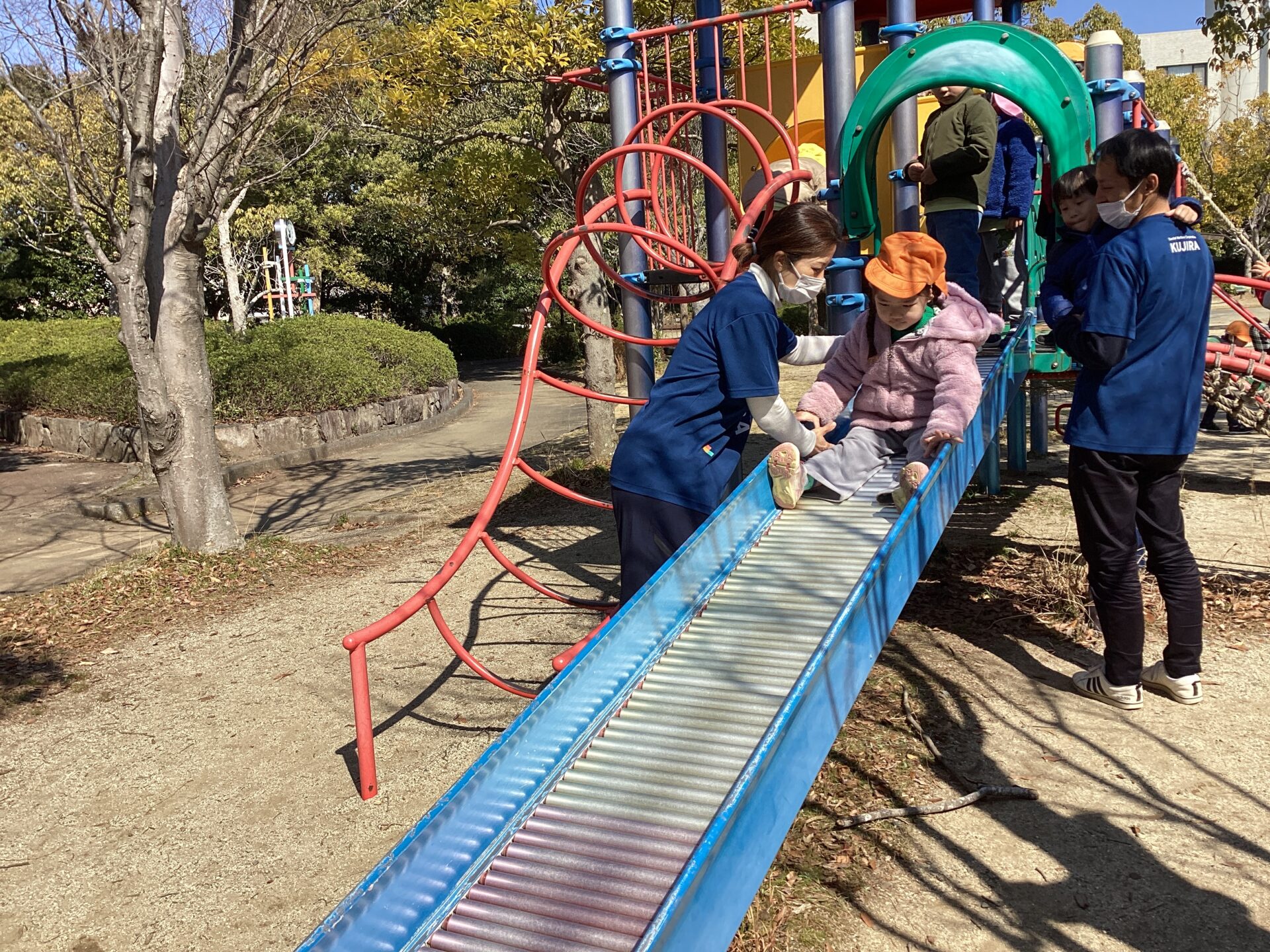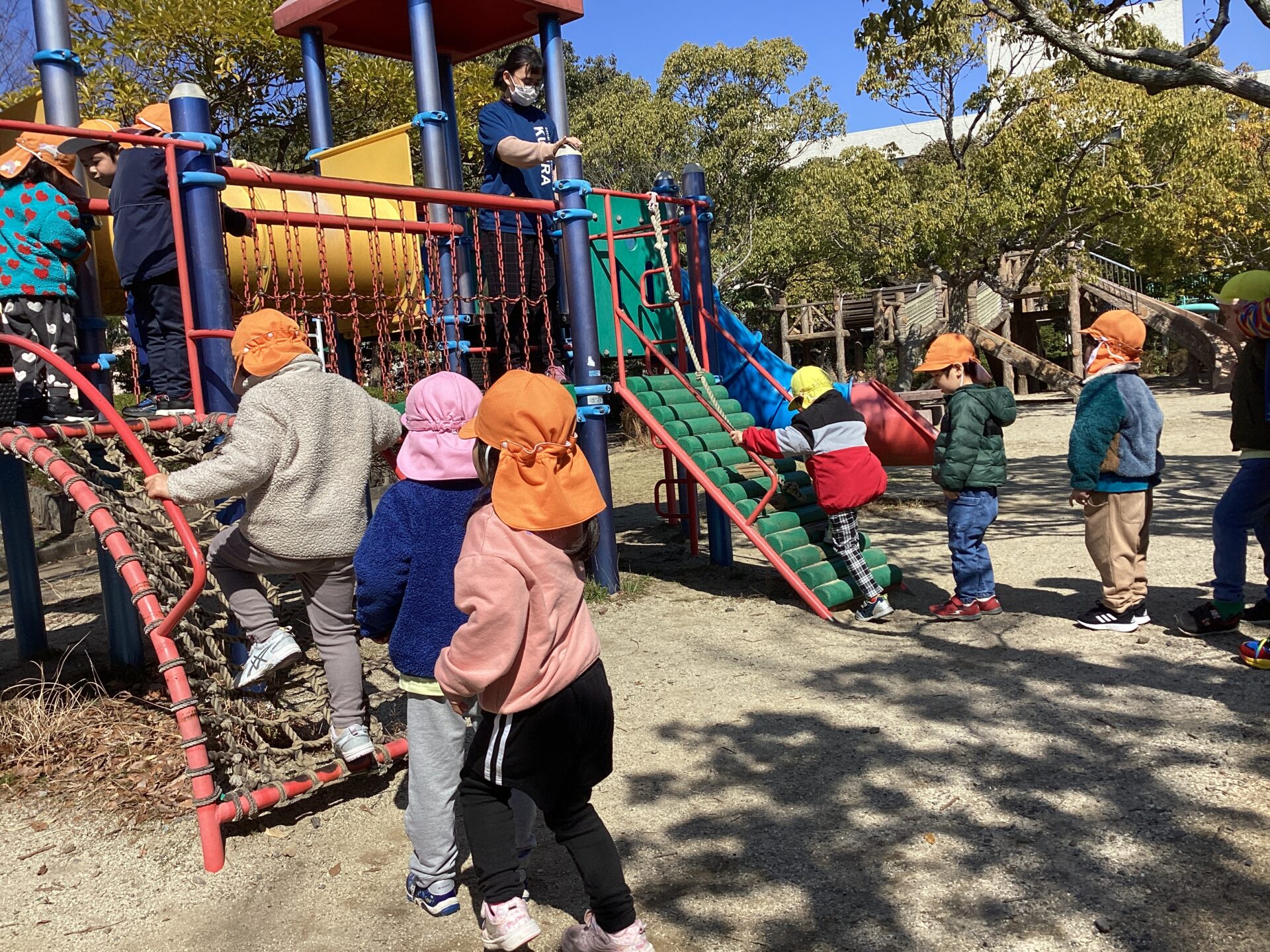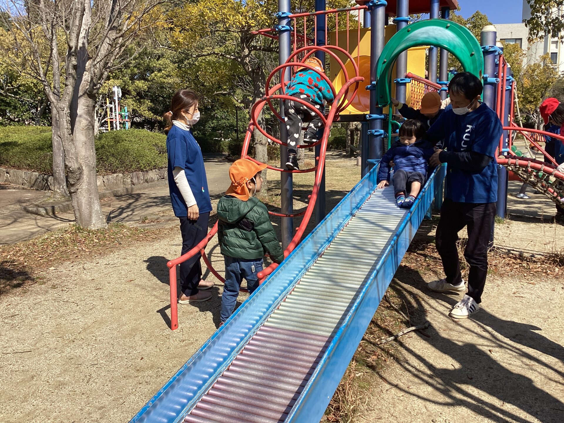 子どもたちが公園に行く頃には、風は吹いていましたが、ポカポカ陽気になり一安心です。
