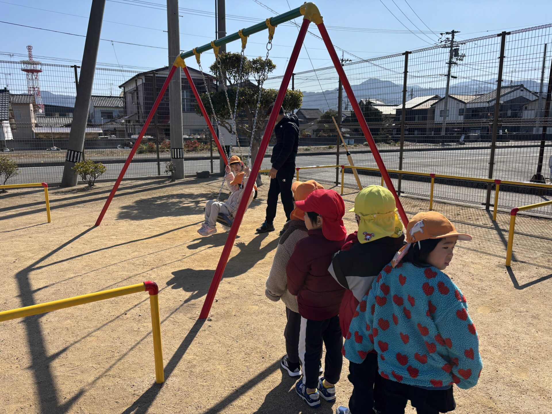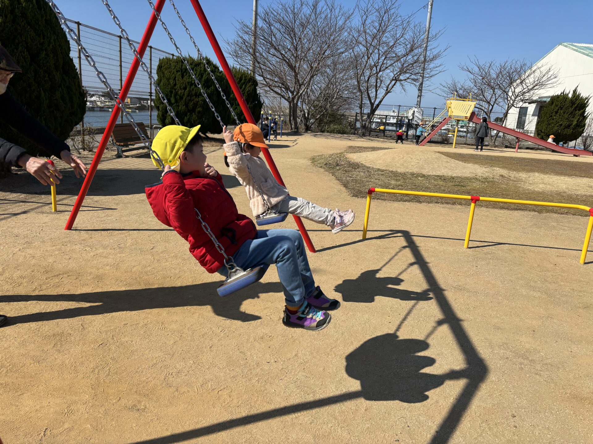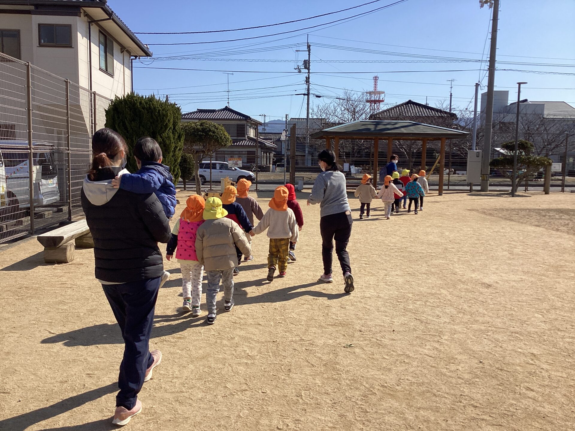 子どもたちが公園に行く頃には、風は吹いていましたが、ポカポカ陽気になり一安心です。