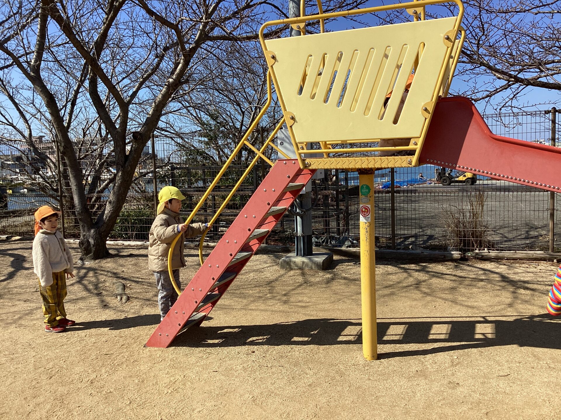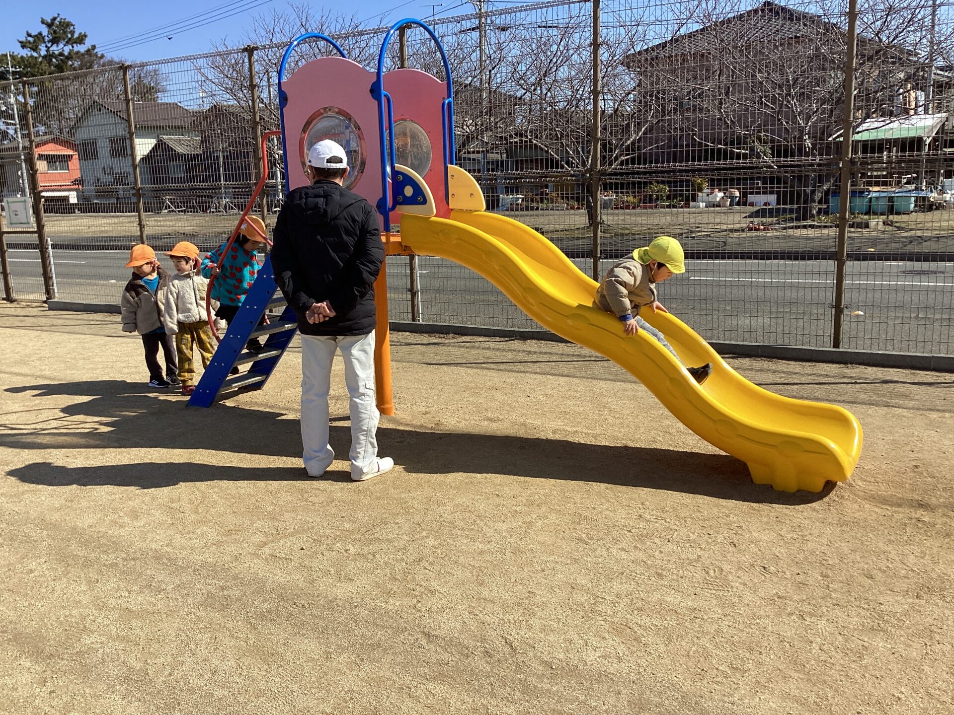 以前からすべり台は、並んで待つことができていました。